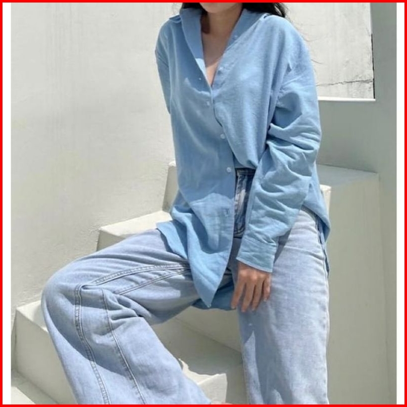 Olivia Shirt Kemeja Oversize Atasan Wanita Lengan Panjang Polos Linen