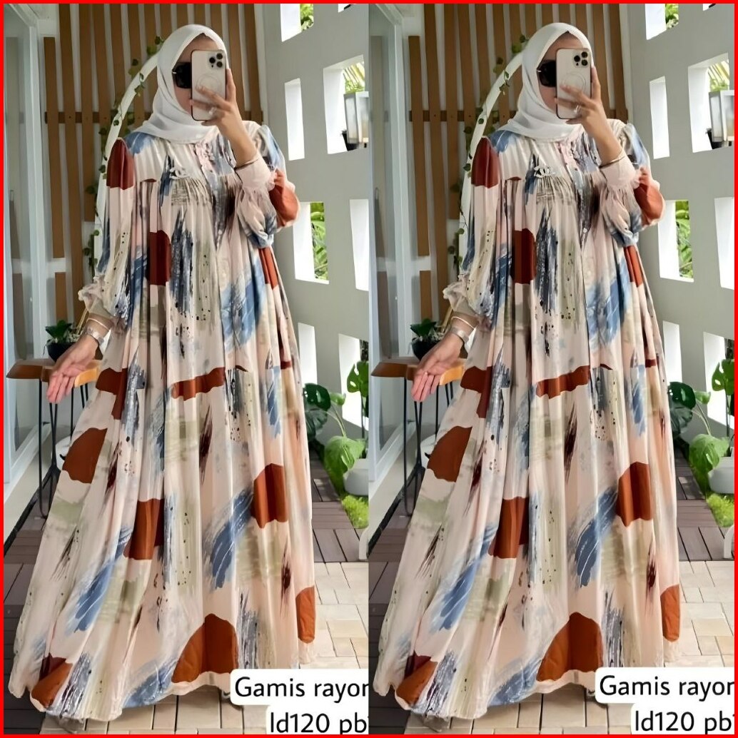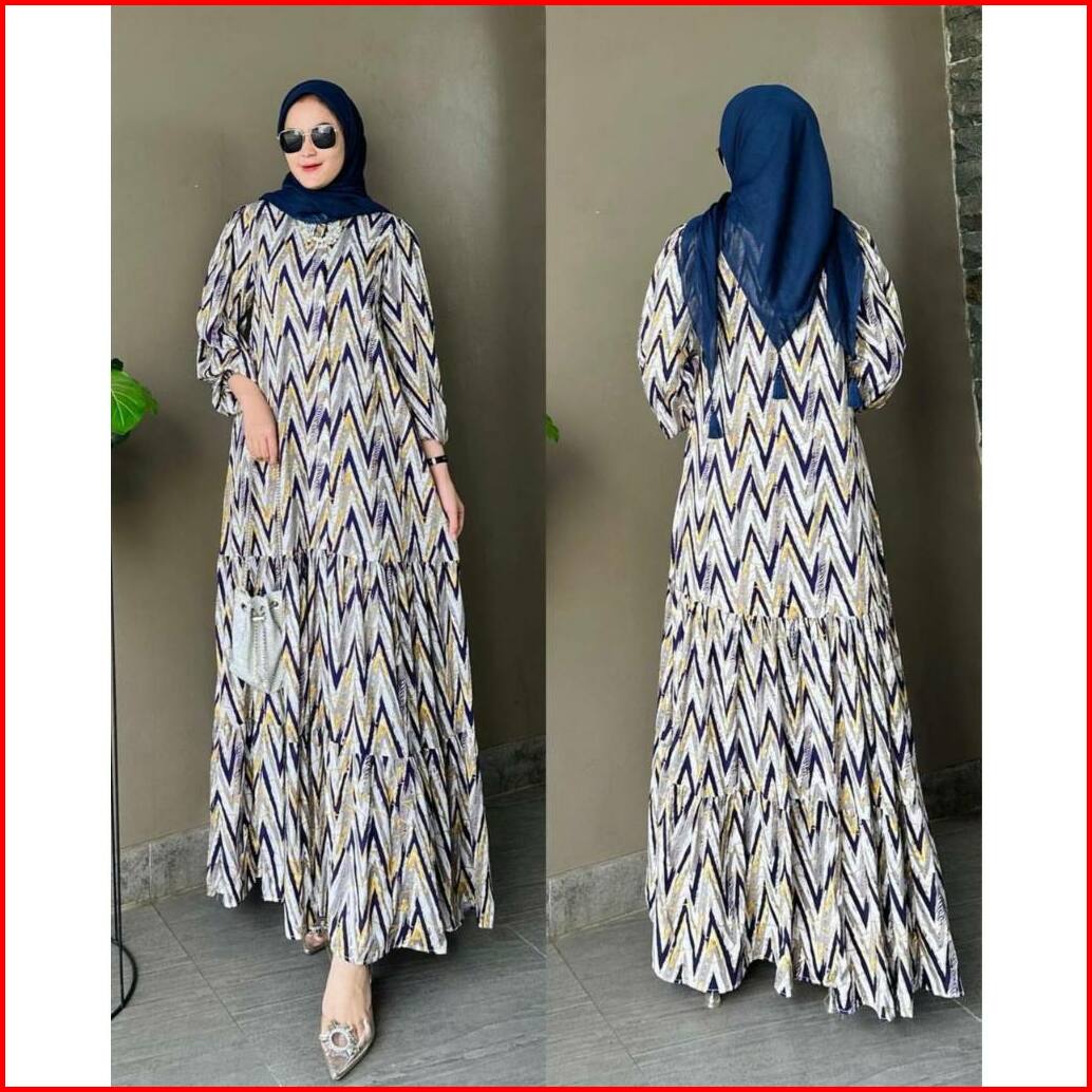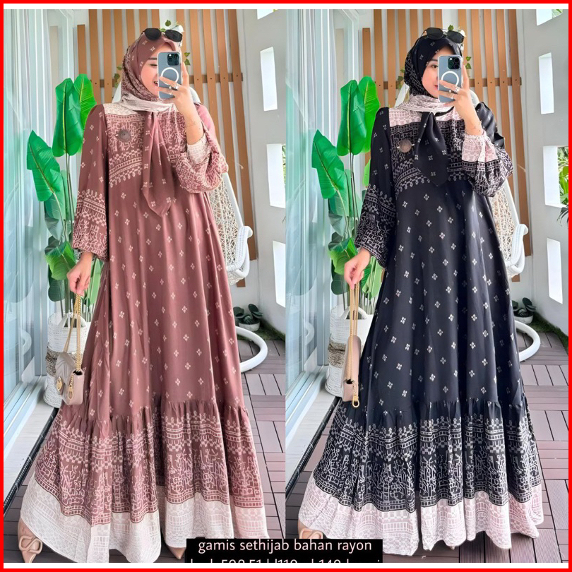 Dress Rayon Diamond Motif Bunga Gamis Rayon Ori Premium Tebal Adem Rok Susun Rempel Busui Termurah