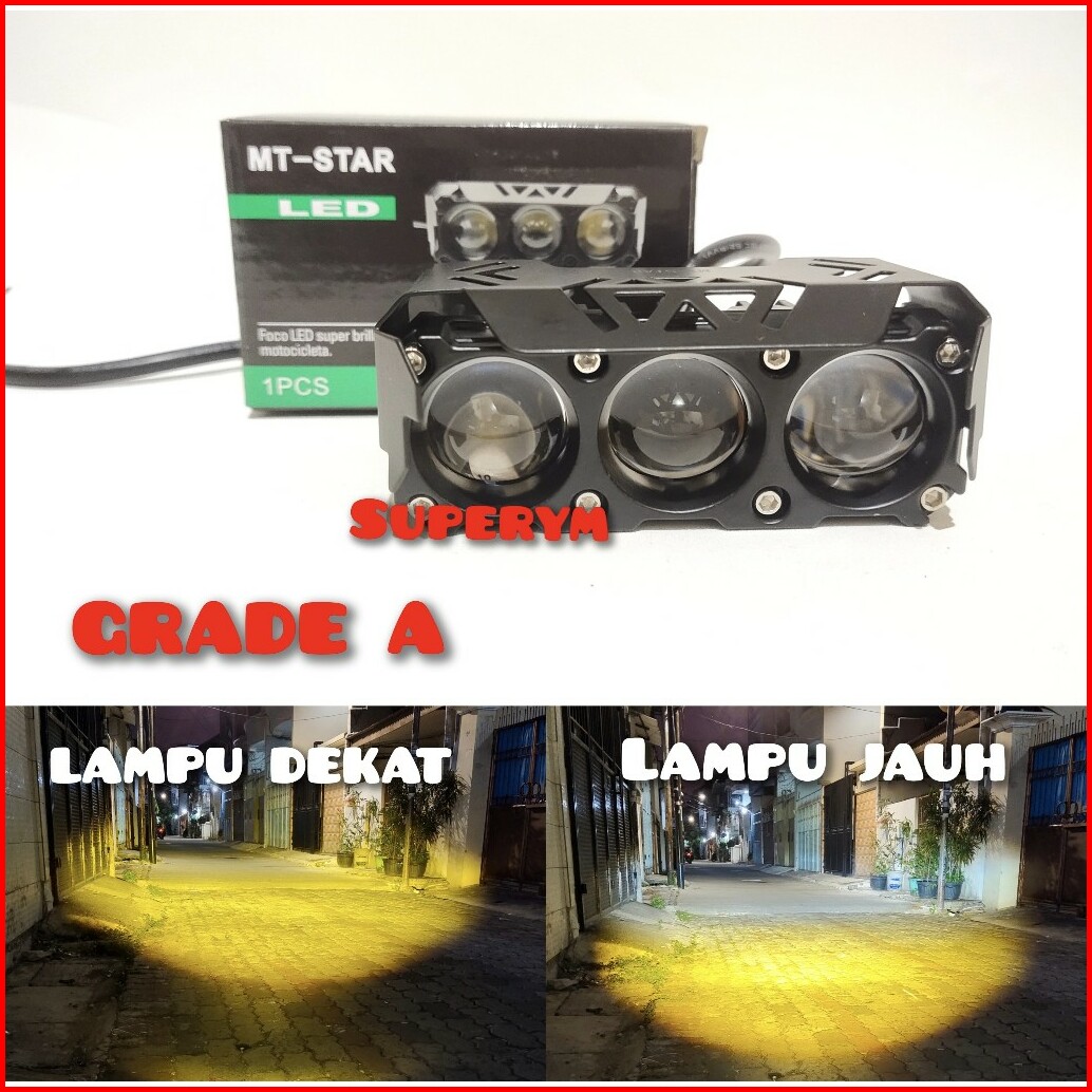 Lampu Tembak Sorot Sql 3 Mata Original Premium Mt Star D2 D2 Jauh Dekat Kuning Putih