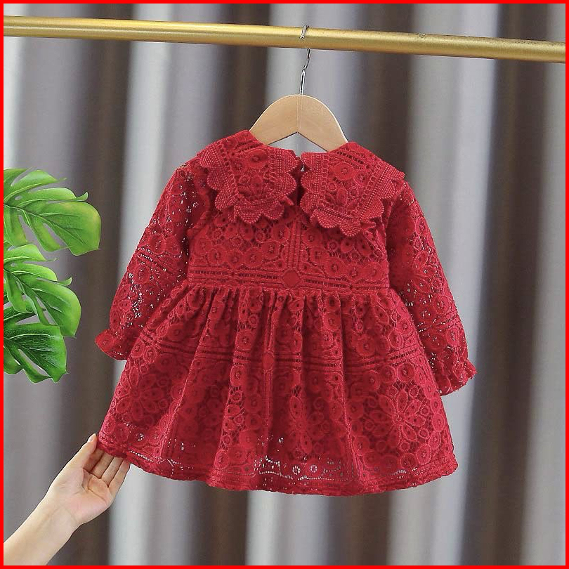 1-7tahun Dress Brokat Elegan Gaun Pesta Anak Perempuan Merah Putih