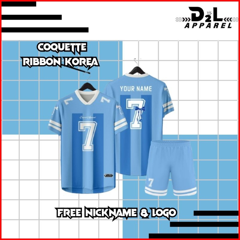 Jersey Coquette Ribbon Korea Blue Full Printing Free Nickname Logo