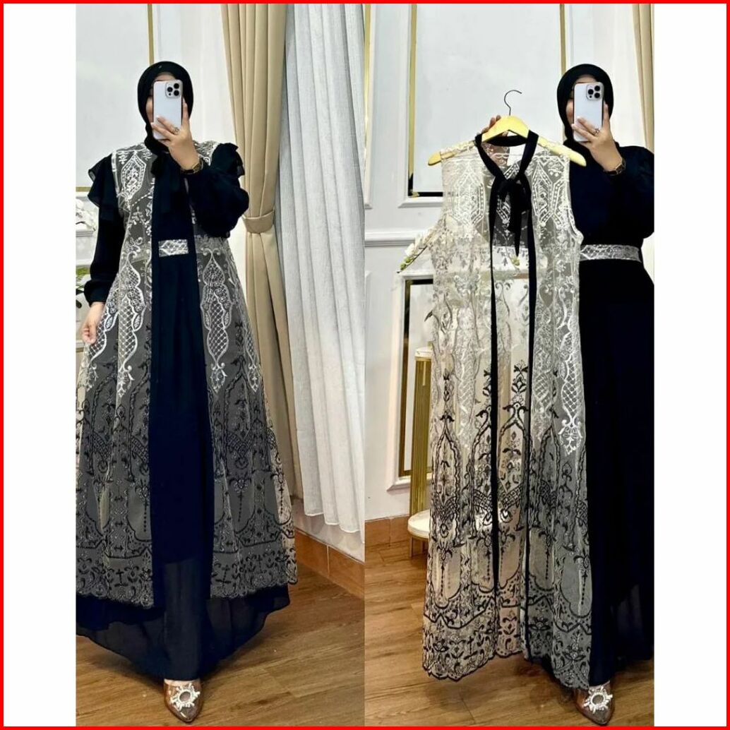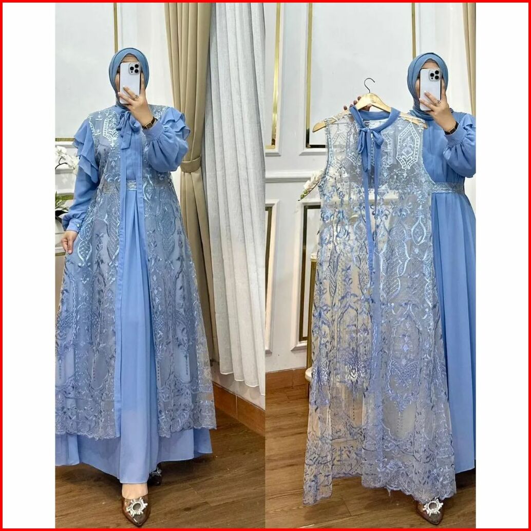 Model Terbaru Vina Dress Gamis Brukat Outer 2024 Gamis Pesta Mewah Dress Kondangan Wanita Kekinian