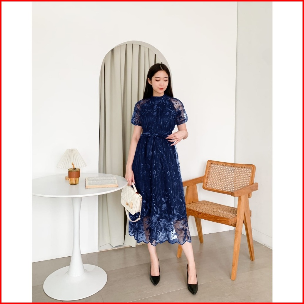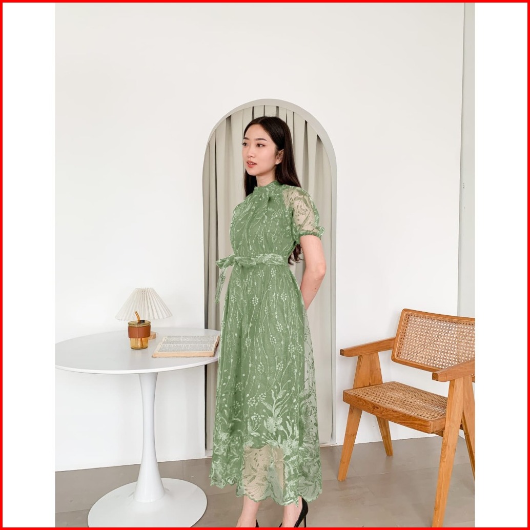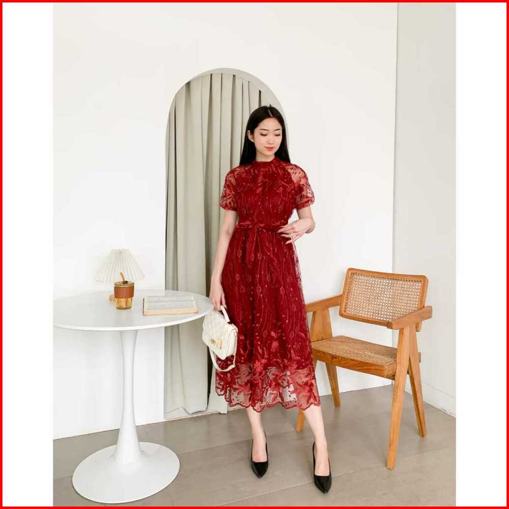 Annabelle M L Xl Dress Pesta Kondangan Natal Brokat Tile Simple Elegan Mewah Gaya Korea Dress Gaun Formal Terbaru