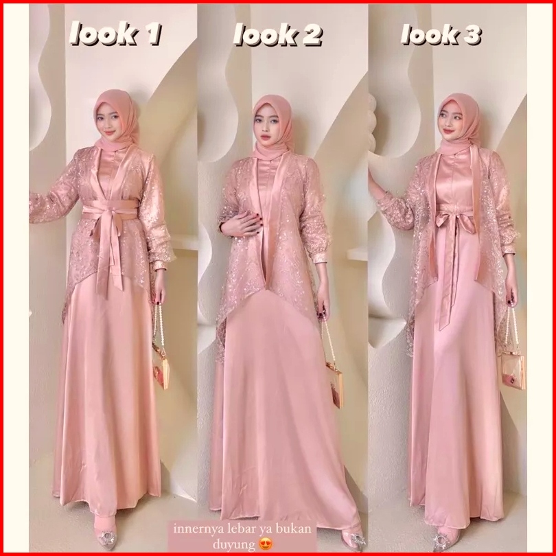 Promo Veloxa Dress Inner Outer Brukat Tille Jullite Premium Free Belt Murah 2023 Dress Kondangan