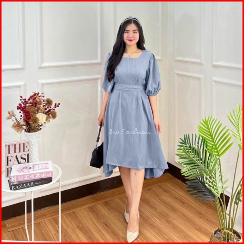 Leona Dress Dress Wanita Midi Casual