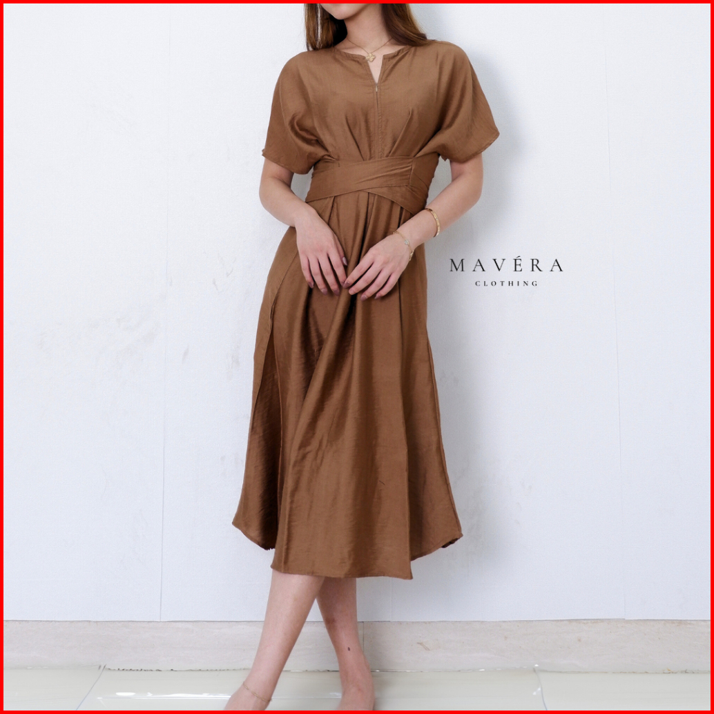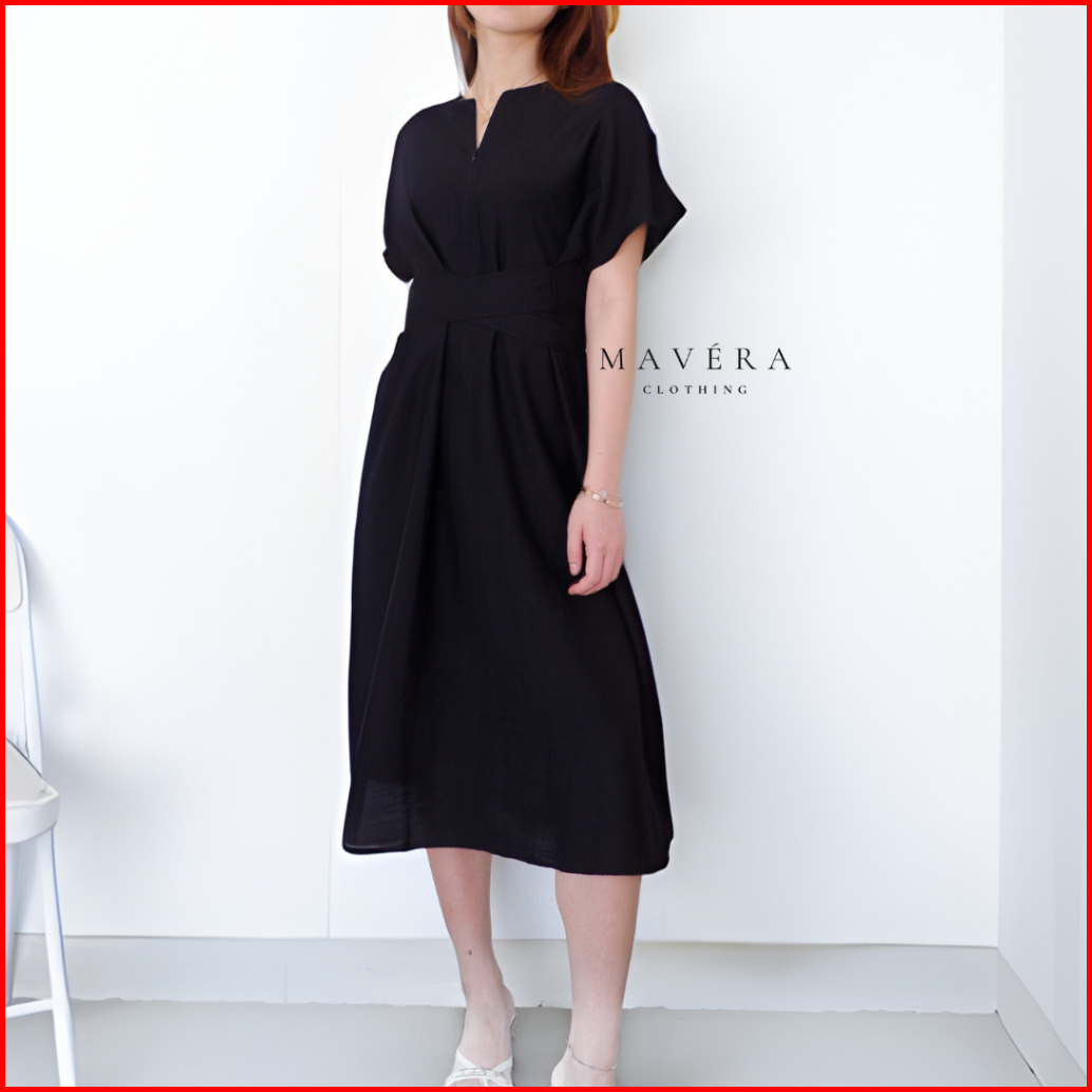 Mavera - Jennie Midi Dress With Zipper Soft Linen Dress Dengan Tali Pinggang Daster Bumil Busui Dress Terbaru 2024 Basic