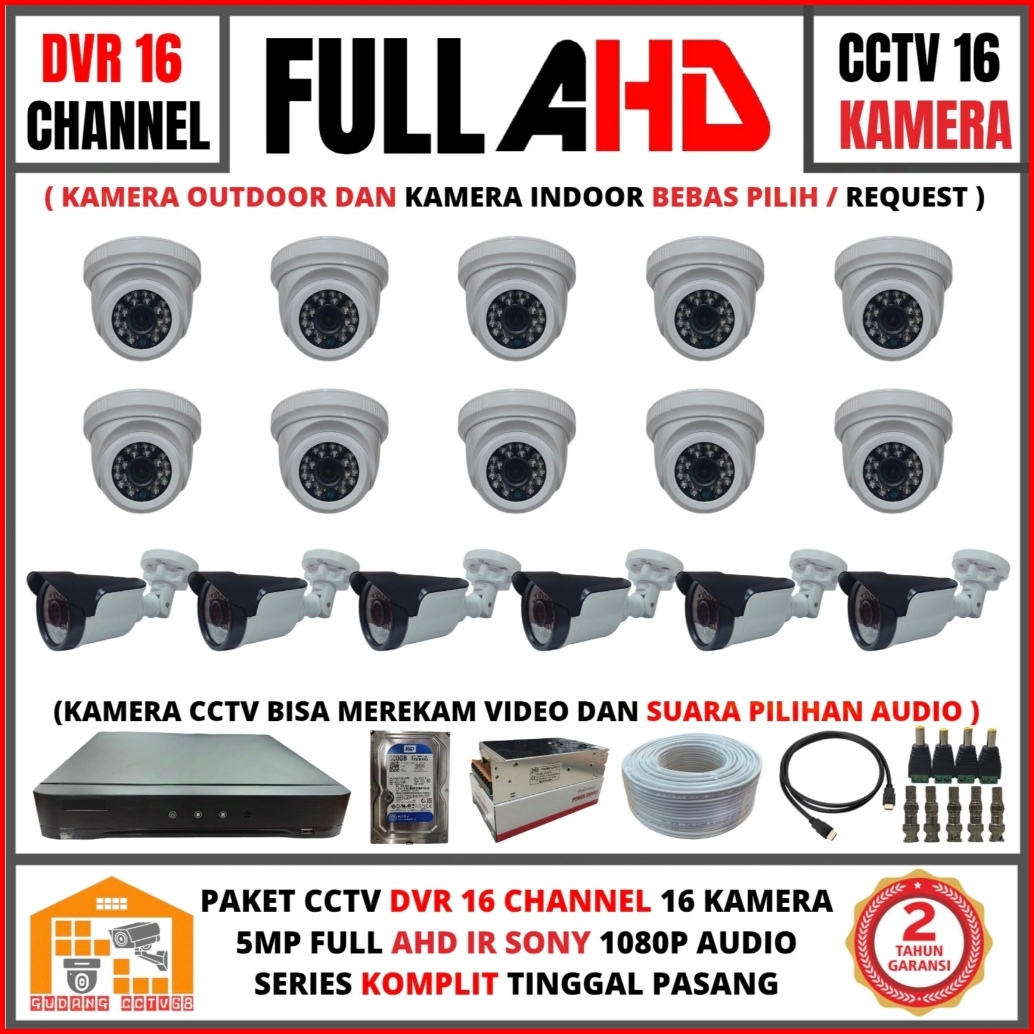 Paket Cctv 16 Channel 16 Kamera 5mp Full Ahd 1080p Ir Sony Audio Komplit Tinggal Pasang