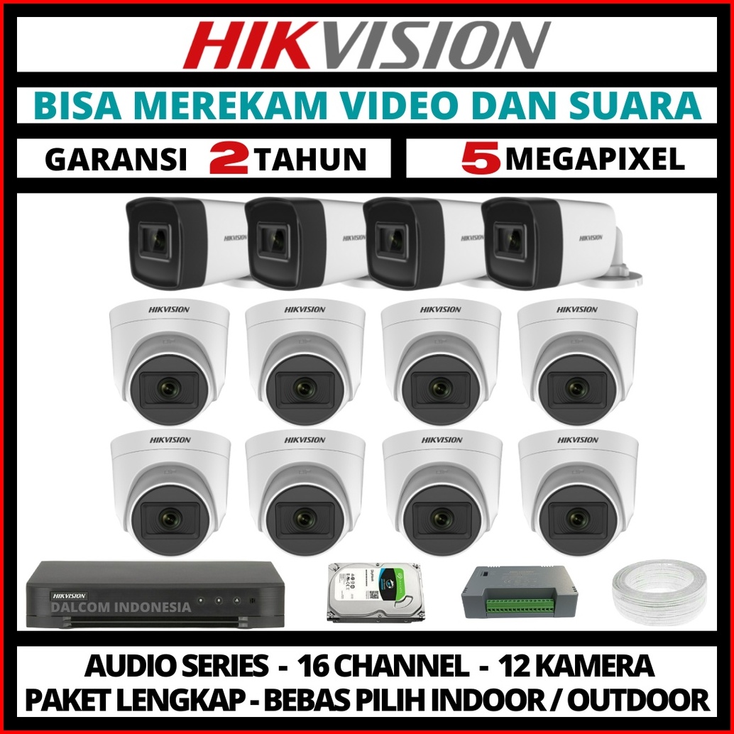 Paket Cctv Hikvision 5mp 16 Channel 12 Camera Turbo Hd Kamera Cctv Dvr Full Hikvision