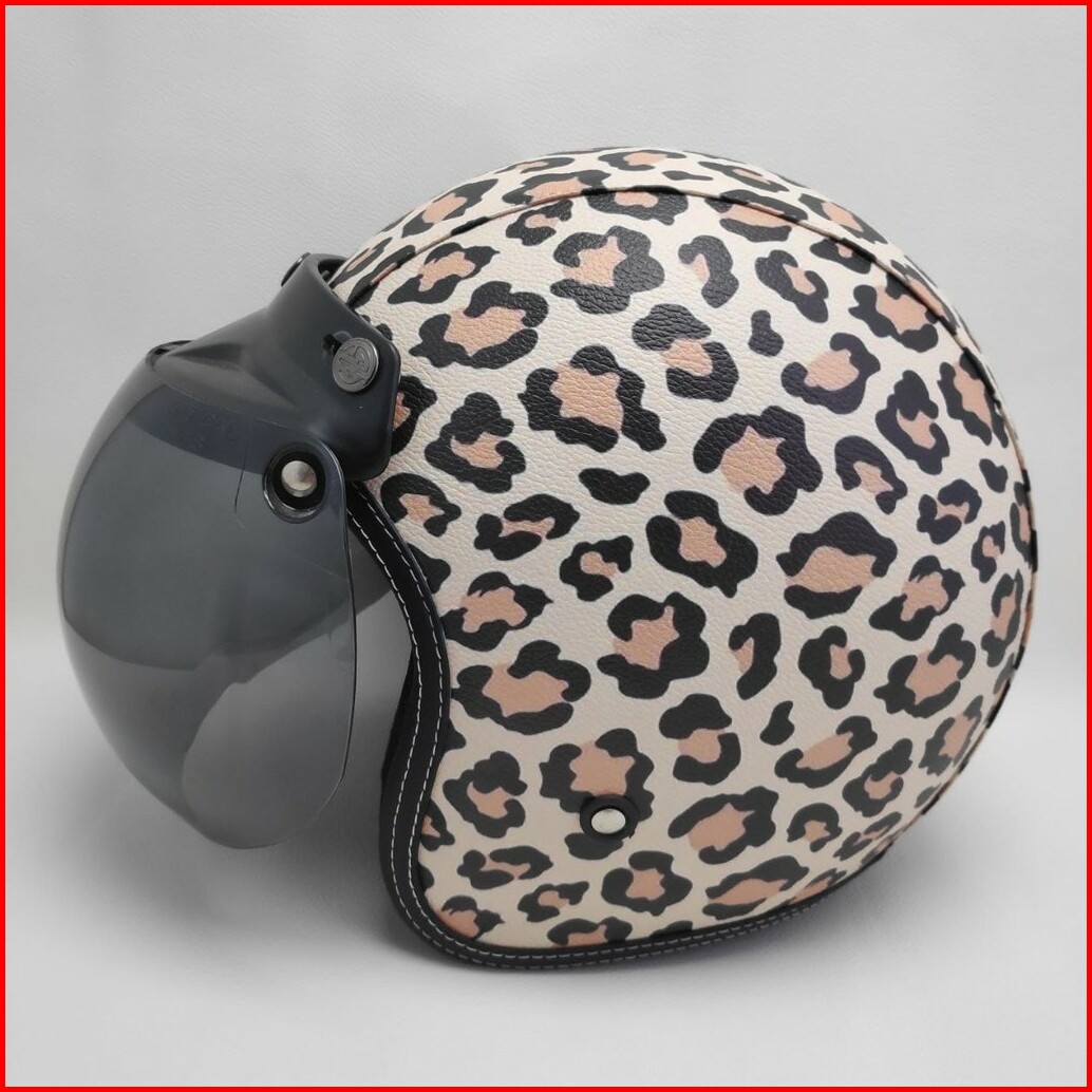 Helm Bogo Dewasa Retro Kulit Cewek Motif Loreng Macan