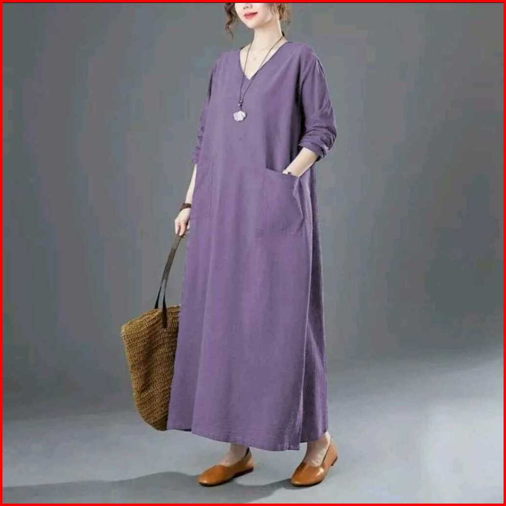 Alinea-farsha Midi Dress Jumbo Polos Gamis Wanita Muslim Modern Kekinian Premium