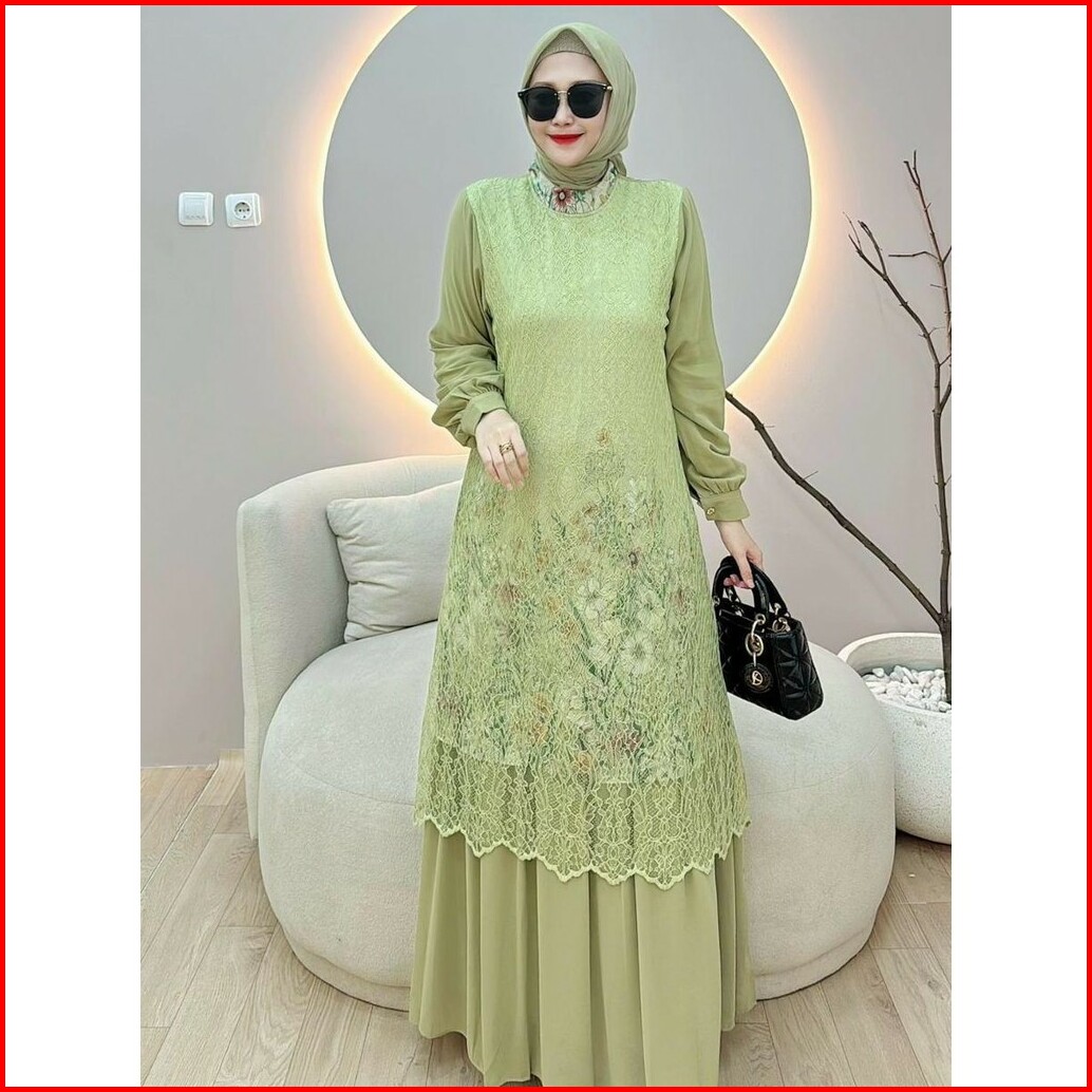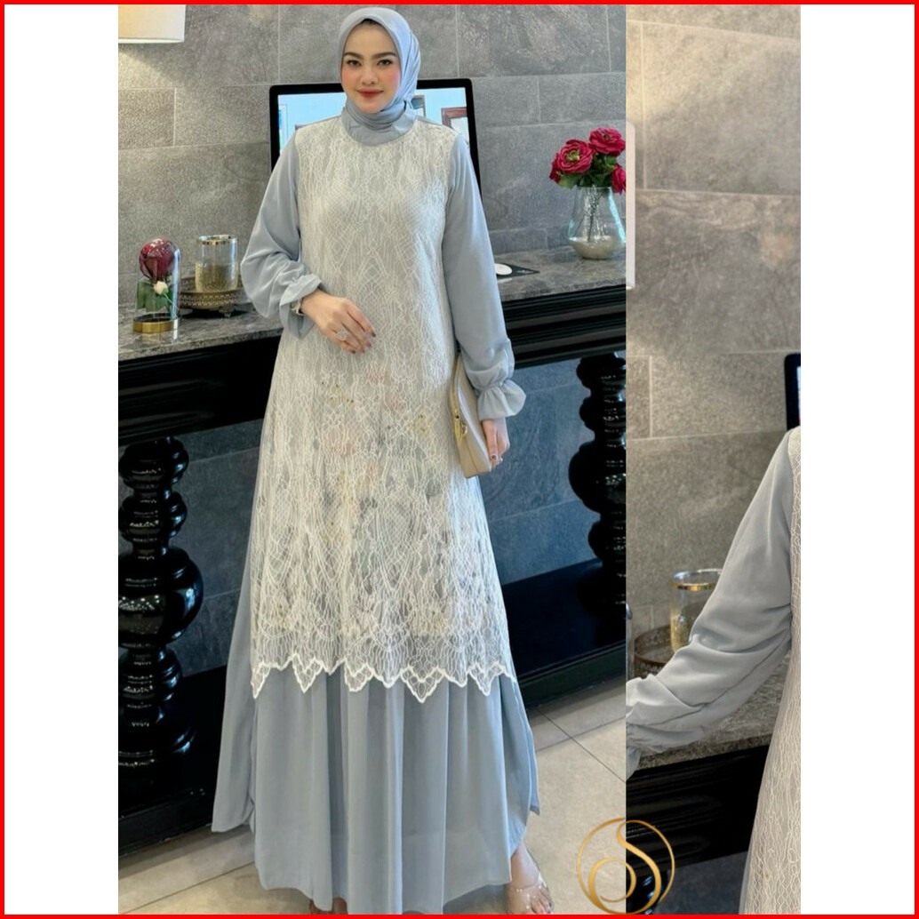 Amara Utami Gamis Dress Wanita Terbaru Ceruty Babydoll Mix Cantily Ld 110