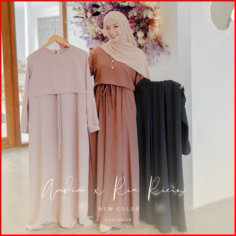 Glizhijab - Andin Dress X Ria Ricis Gamis Muslim Terlaris Dress Hitam Dress Korean Style Gamis Terbaru 2024 Lebaran Wani