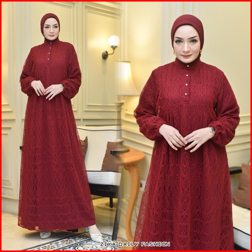 Elsira Dress By Ziya Gamis Full Brokat Mix Crincle Tebaru 2024