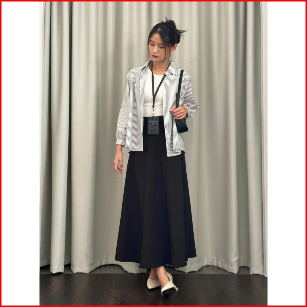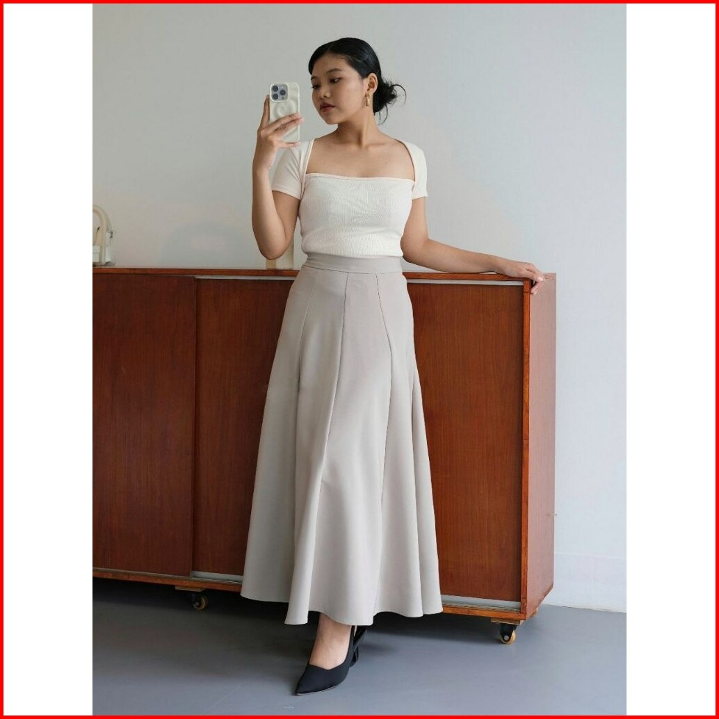 Audy Skirt - Korean Loose Maxi Skirt Rok Wanita Anti Kusut Polyester - Rok Flare Wanita - Rok Basic Polos - Maxi Skirt R