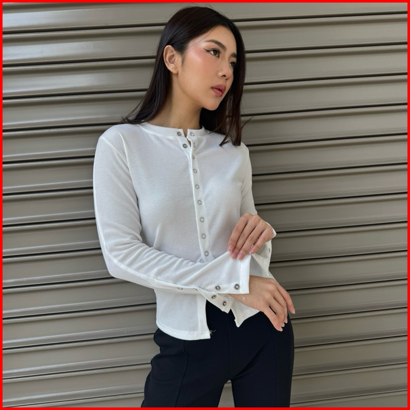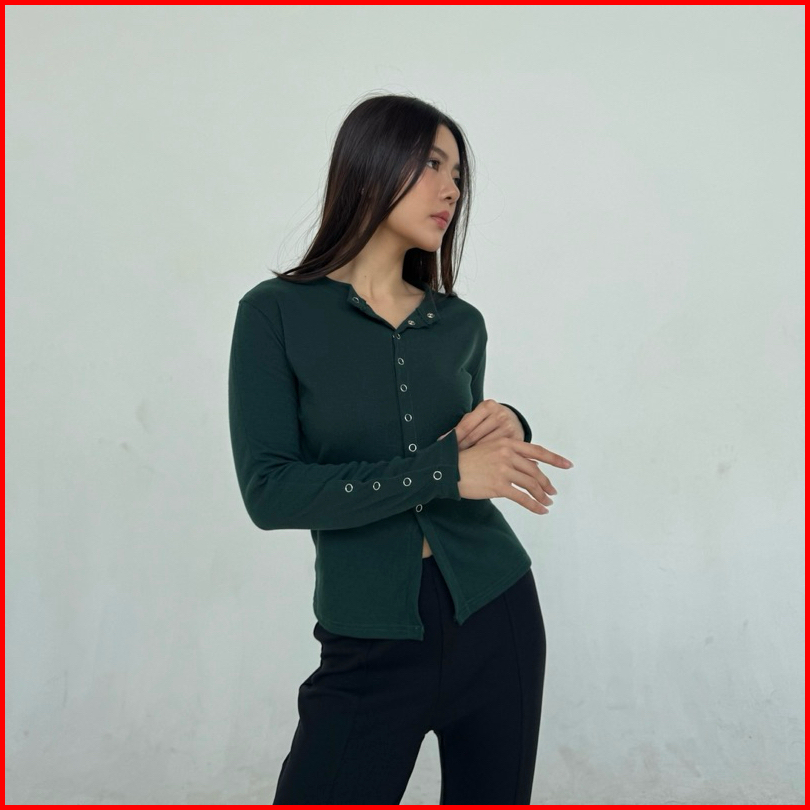 Alle Top Atasan Knit Wanita Lengan Panjang Kancing Basic Korean Snap Button Blazer Top Summer Baju Knit Kancing Rib Wani