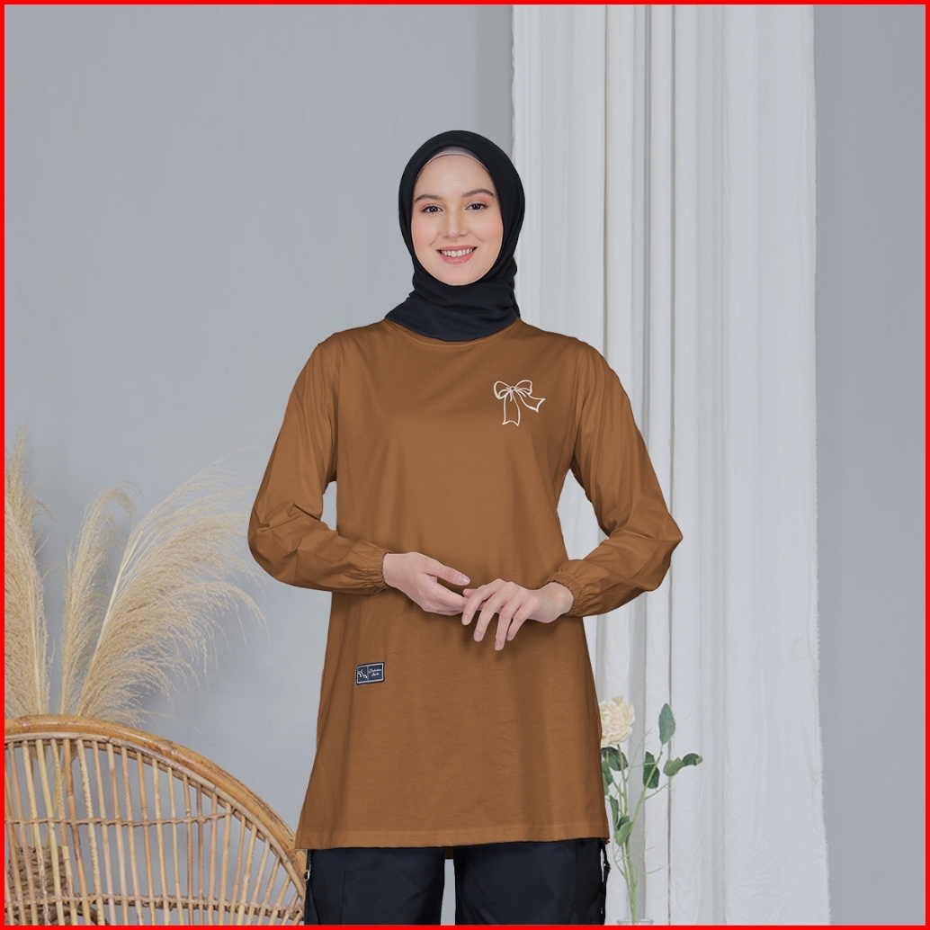 Kaos Tunik Wanita Motif Pita Ribbon Coquette Kekinian Premium Bahan Katun Combed 20s Original Terbaru