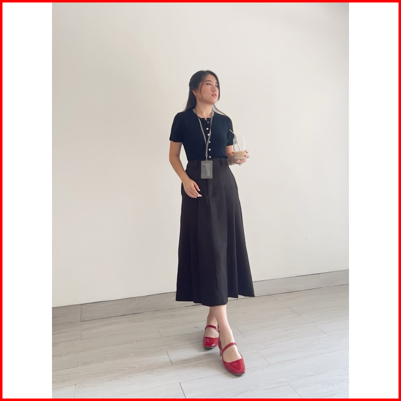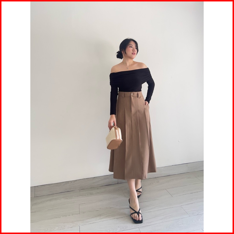 Klavee Blair Midi Flare Skirt Rok Midi Bahan Wanita Rok Korean Style Kekinian