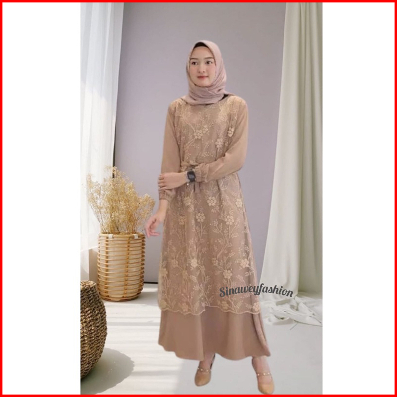 Gamis Brukat Tile Mutiara Gamis Wanita Terbaru Pake Tali Busui