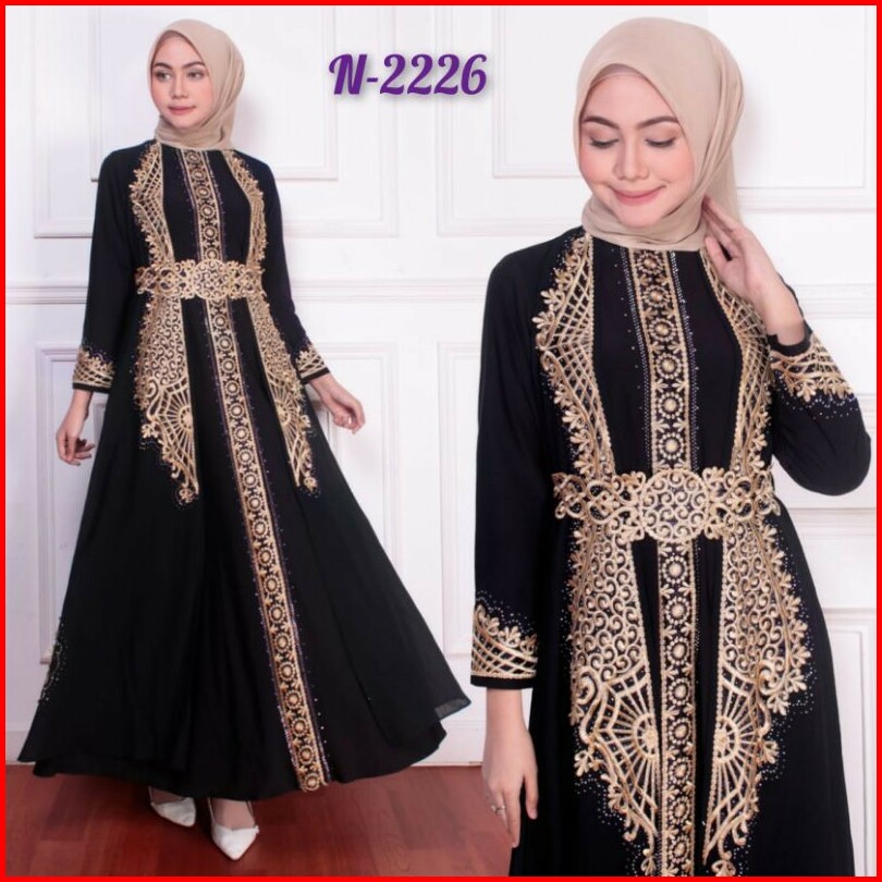 Abaya Turkey Turki Hitam Bordir Exclusive N-2226 Nikitashop