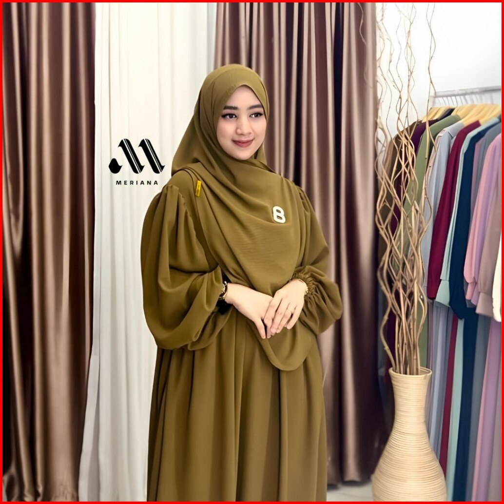 Meriana Gamis Set Hijab Pasmina Lebaran Terbaru 2024 Gamis Syari Pasmina Oval Cringkel Airflow Premium Luna Dress Viral