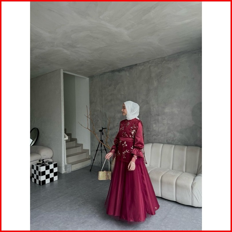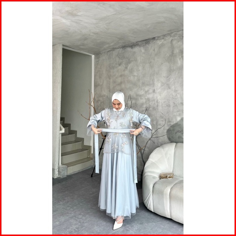 Ied Series Amora Dress Outer Kondangan Gamis Brukat Tulle Garden Terbaru Gaun Kondangan Muslimah Maxi Dress Wanita Musli