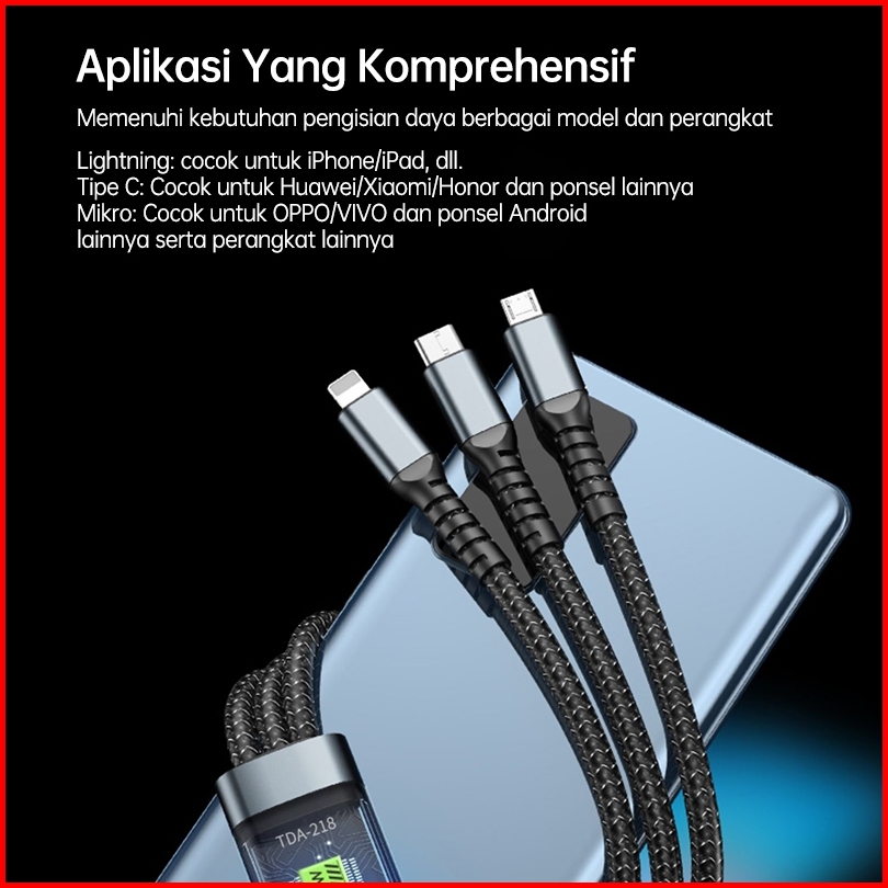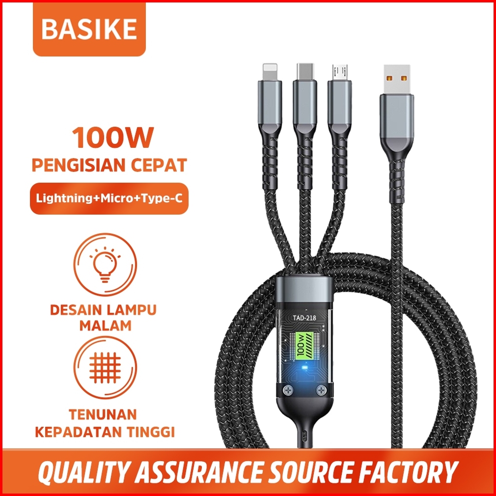 Basike Kabel Data Iphone Fast Charging 100w 3 In 1 Charger Type C Lightning Micro Usb Samsung Xiaomi