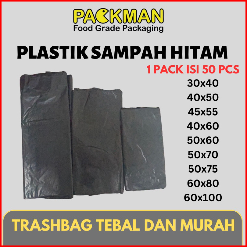 50pcs Kantong Plastik Sampah Hitam 30x40 40x50 40x60 45x55 50x60 50x70 50x75 60x80 Plastik Packing Trash Bag Tebal