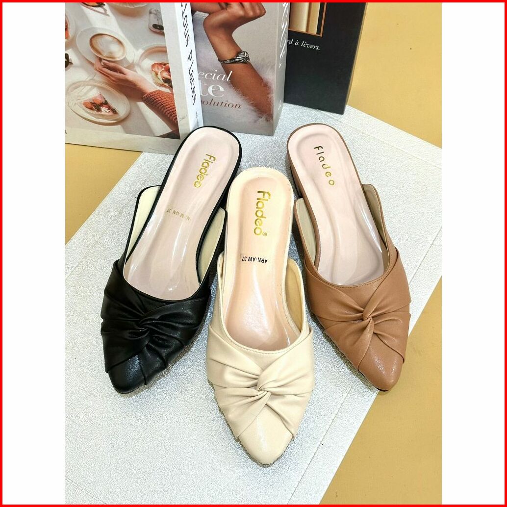 Sandal Wanita Kekinian Mules Heels 3 Cm Termurah Dyo Kepang Pita