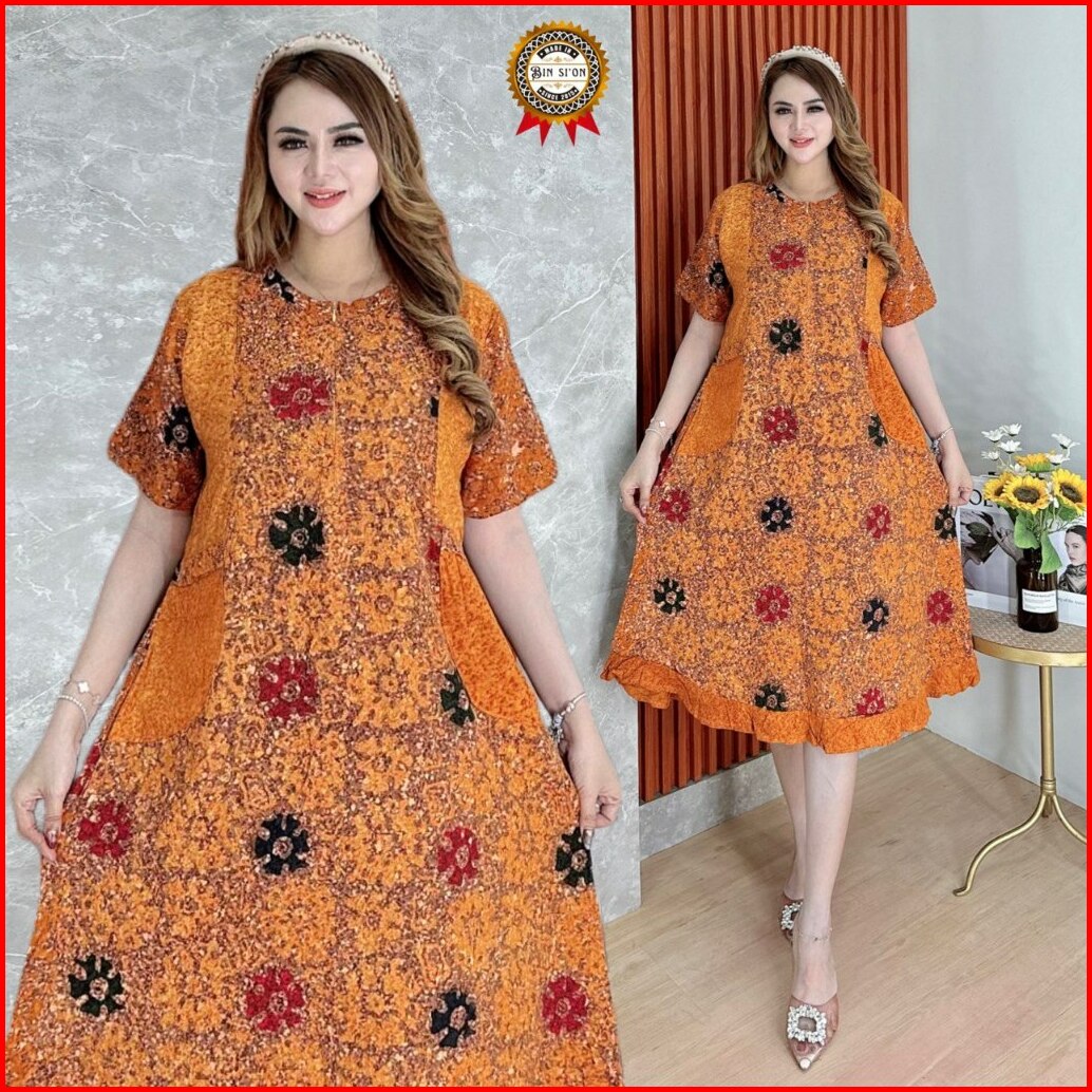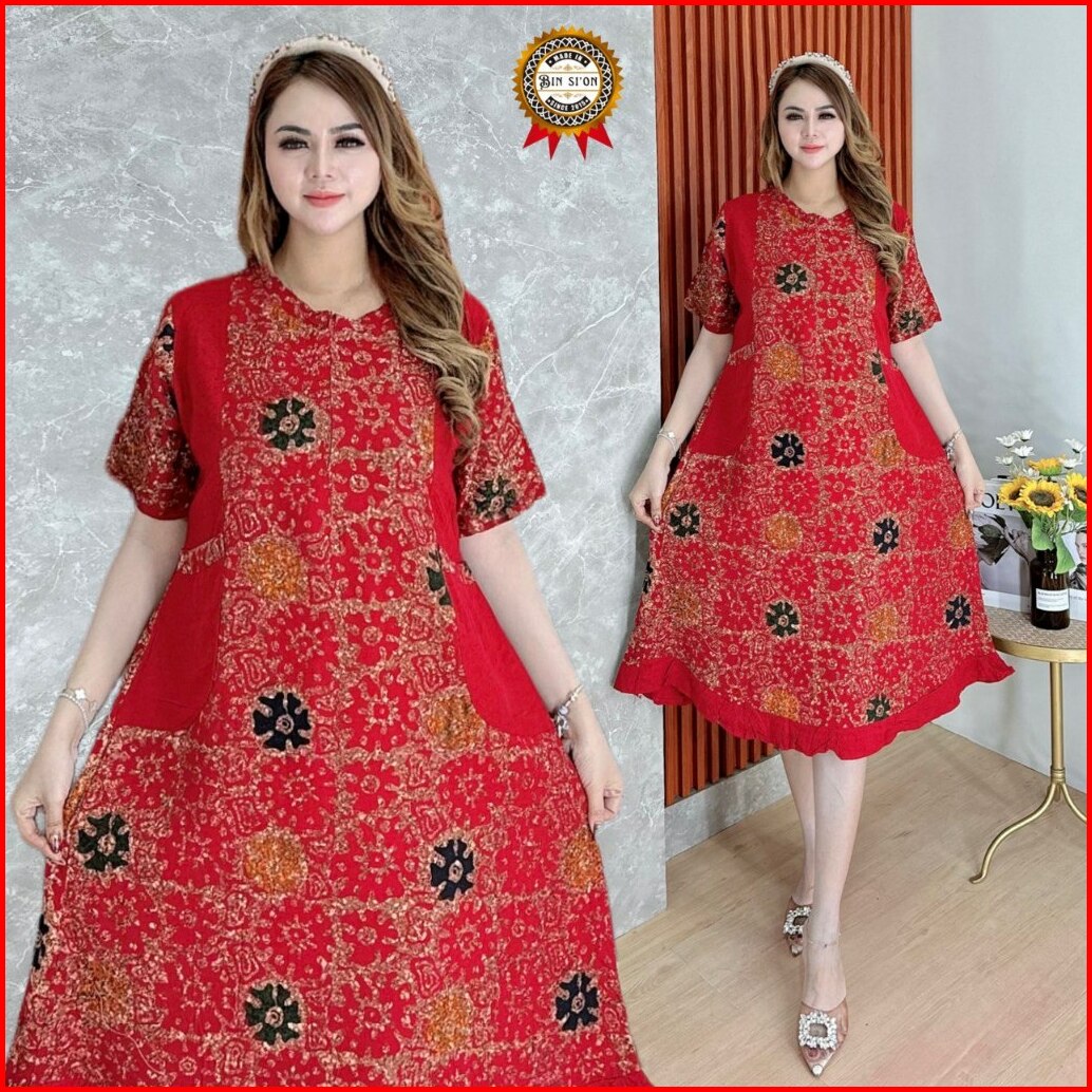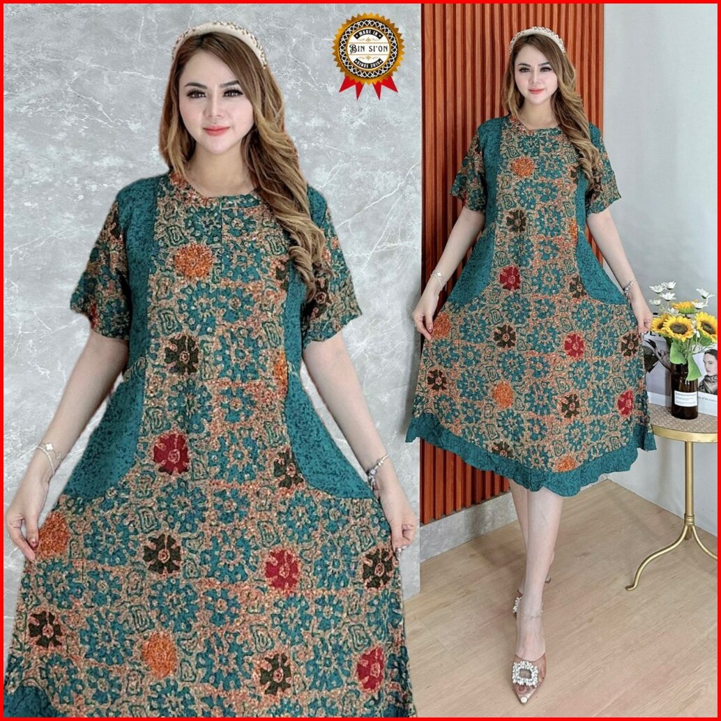 Binsion Daster Maura Batik Cap Rayon Grade A Premium Busui Resleting Depan Daster Kekinian Daster Baju Tidur Daster Wani