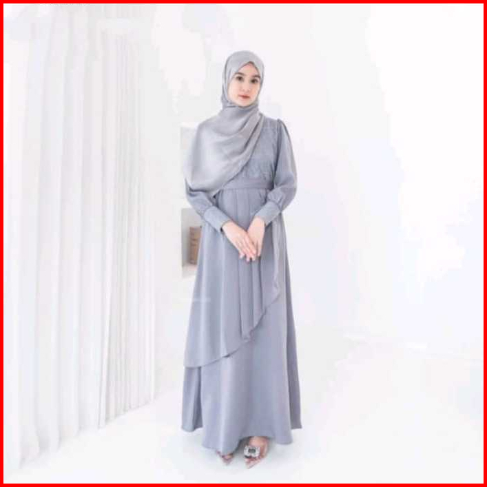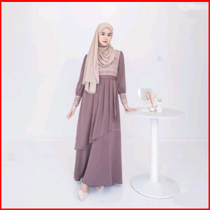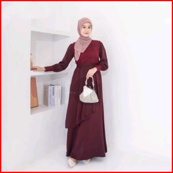 Hn - Gamis Dress Wanita Muslimah Shela Maxy Dress Bahan Crinkle Airflow Variasi Brukat Malika