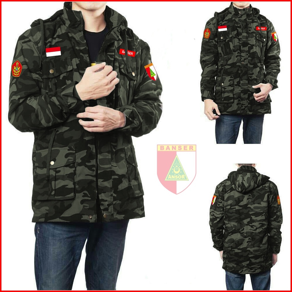 Jaket Banser Loreng Model Parka Bahan Beby Kanvas Pria Dan Wanita Size Xl Army