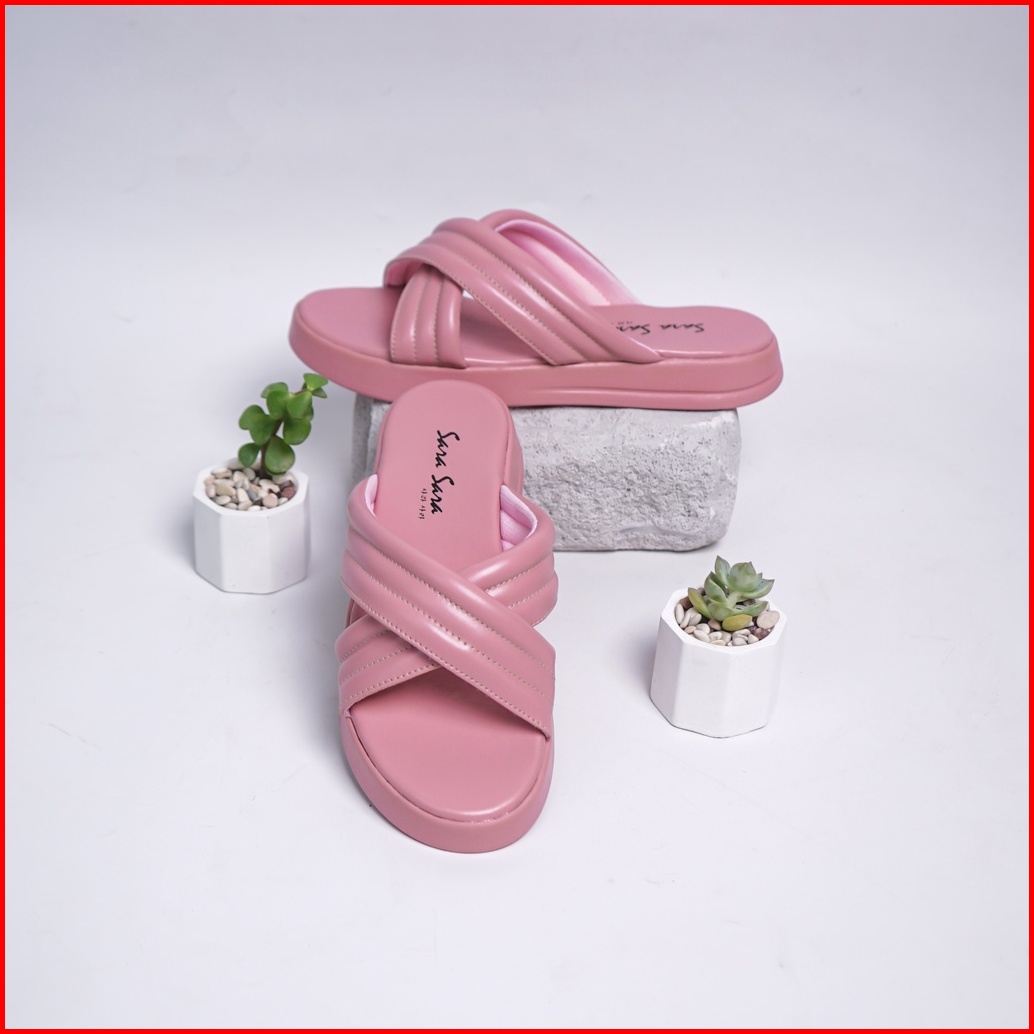 Sara Sara Dora Sandal Selop Platform Wanita Sole Tinggi Empuk Nyaman Sendal Sarasara
