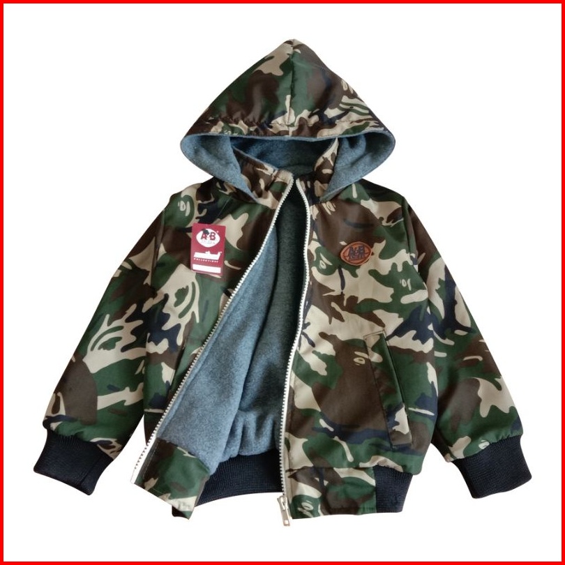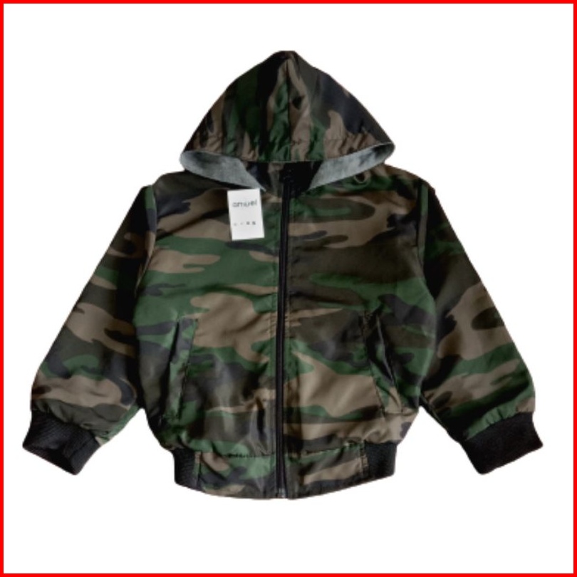 Jaket Anak Laki Laki Motif Loreng Usia 1 - 15 Tahun Pro Series Jaket Bayi Zipper Bertopi Bahan Parasut