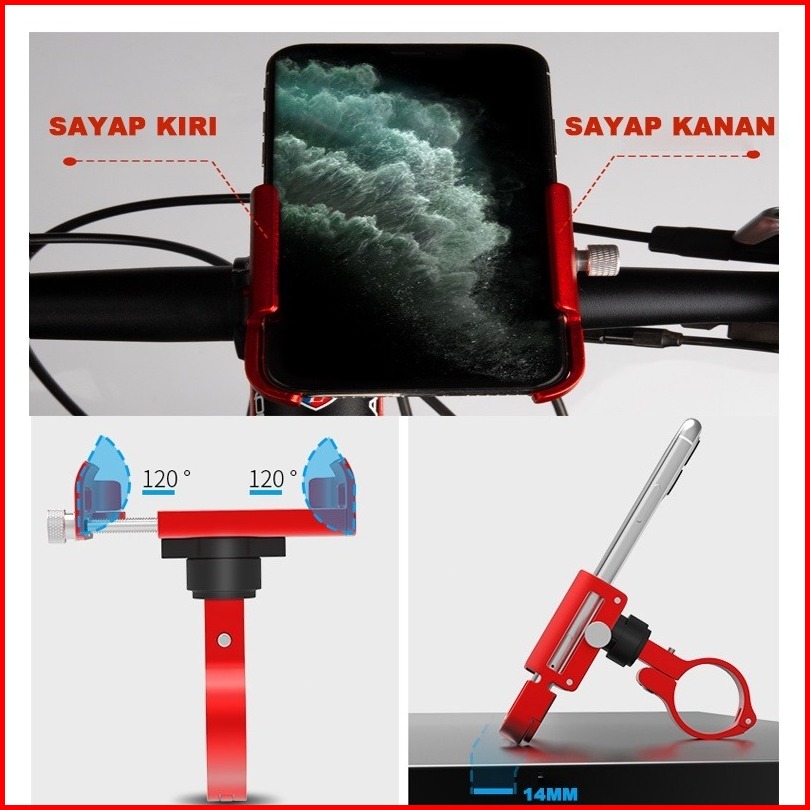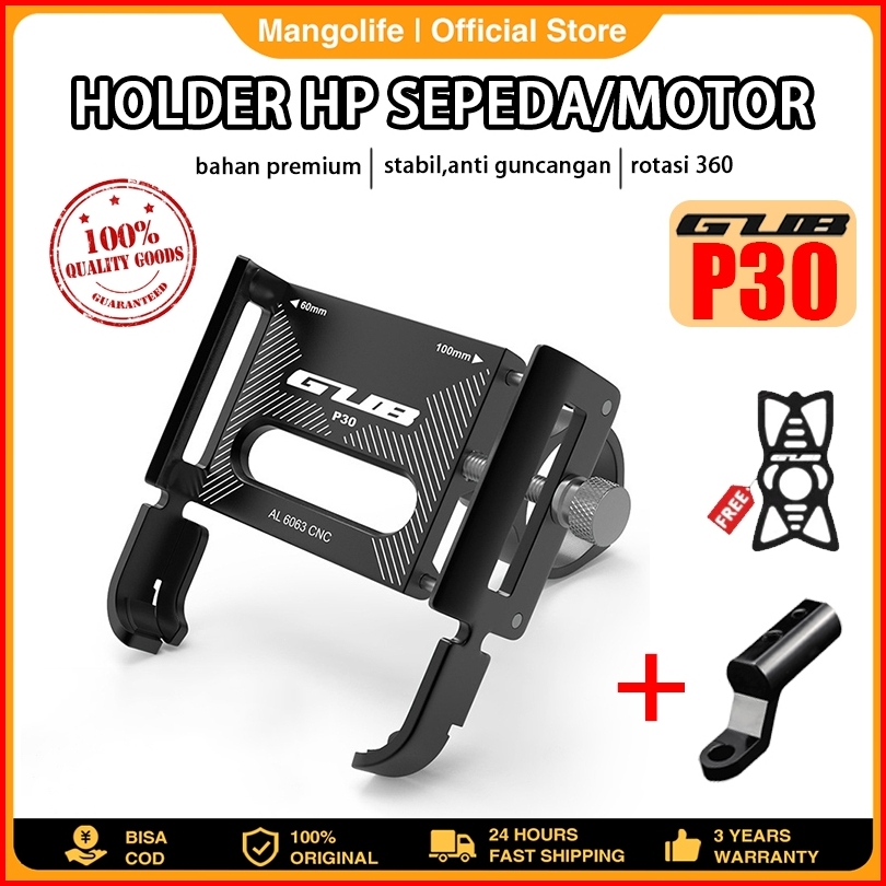 Gub P30 Original Holder Hp Motor Dudukan Ponsel Aluminium Aloy Panyekel Telepon Motor Adaptability Tinggi Wadah Telepon
