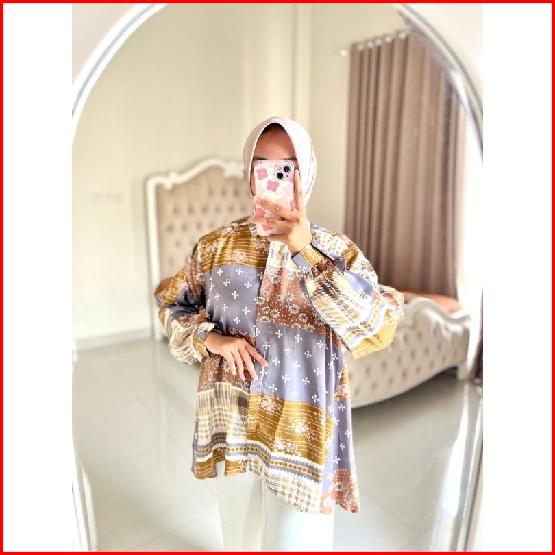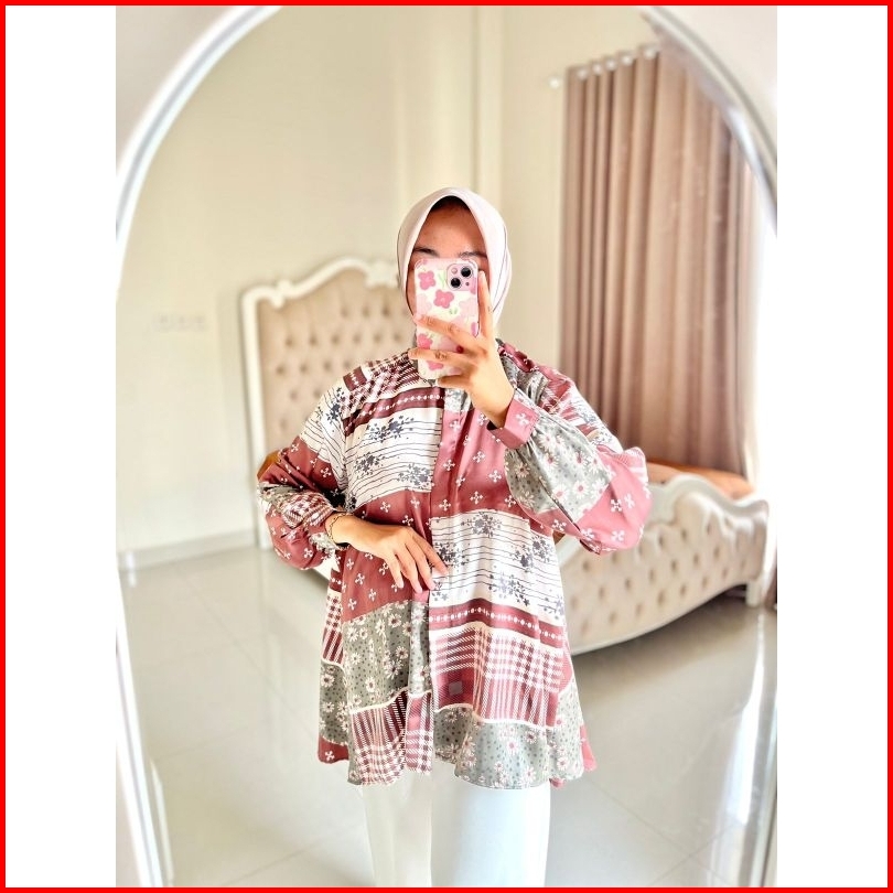 Zize Tunik Motif Bunga Silk Premium