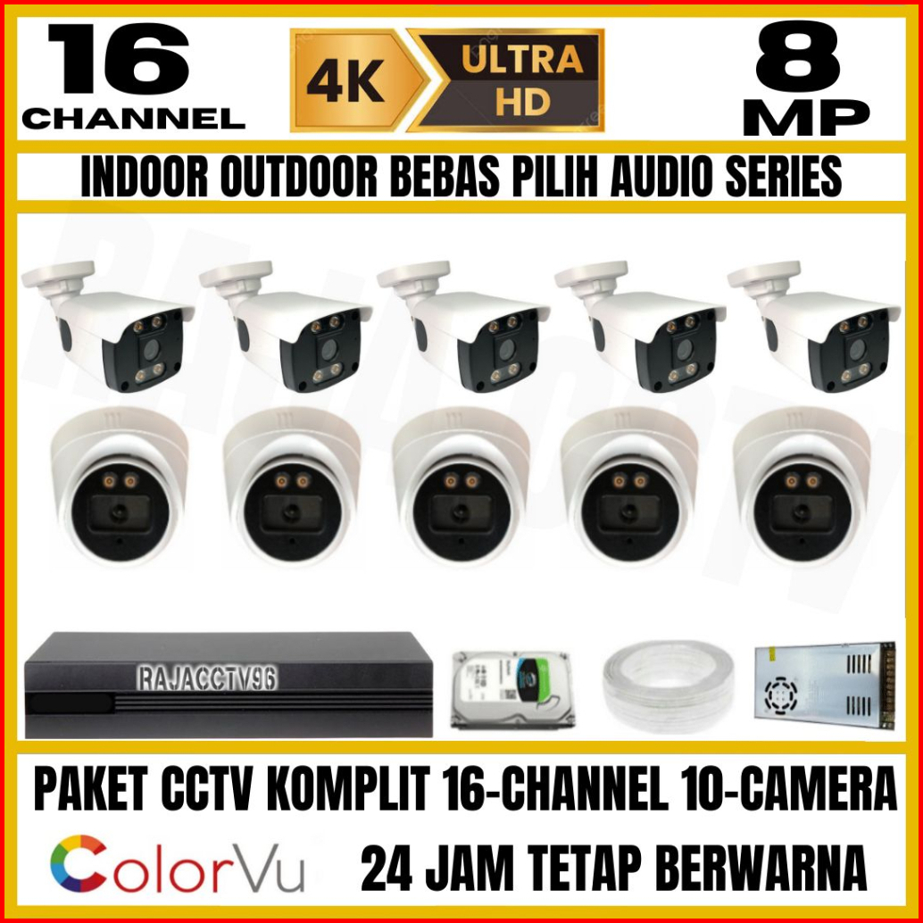 Paket Cctv 8mp Colorvu Colorful 16 Channel 10 Kamera Ultra Hd Camera Audio Series