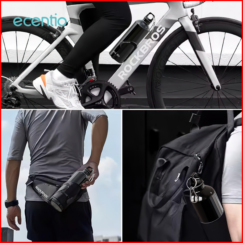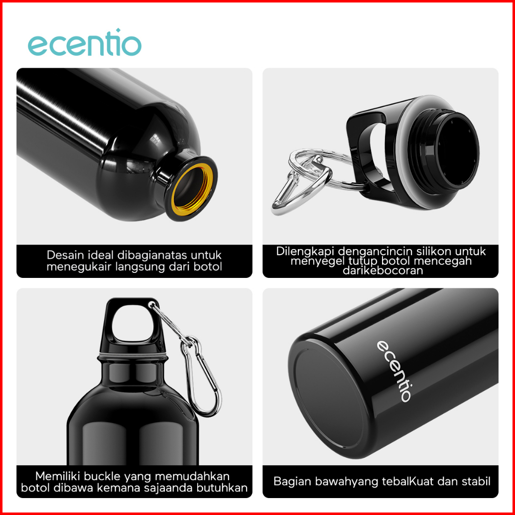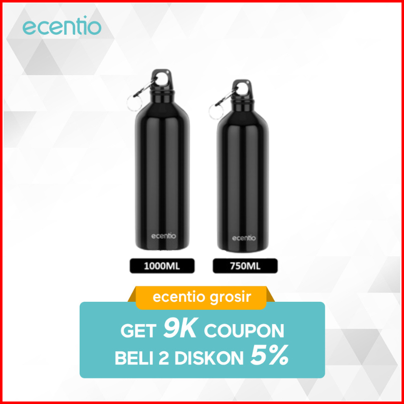 Ecentio 1000ml Botol Minum 1 Liter Aluminium Olahraga Botol Air Bottle Minum Sepeda Cangkir Aluminium Dengan Karabiner B
