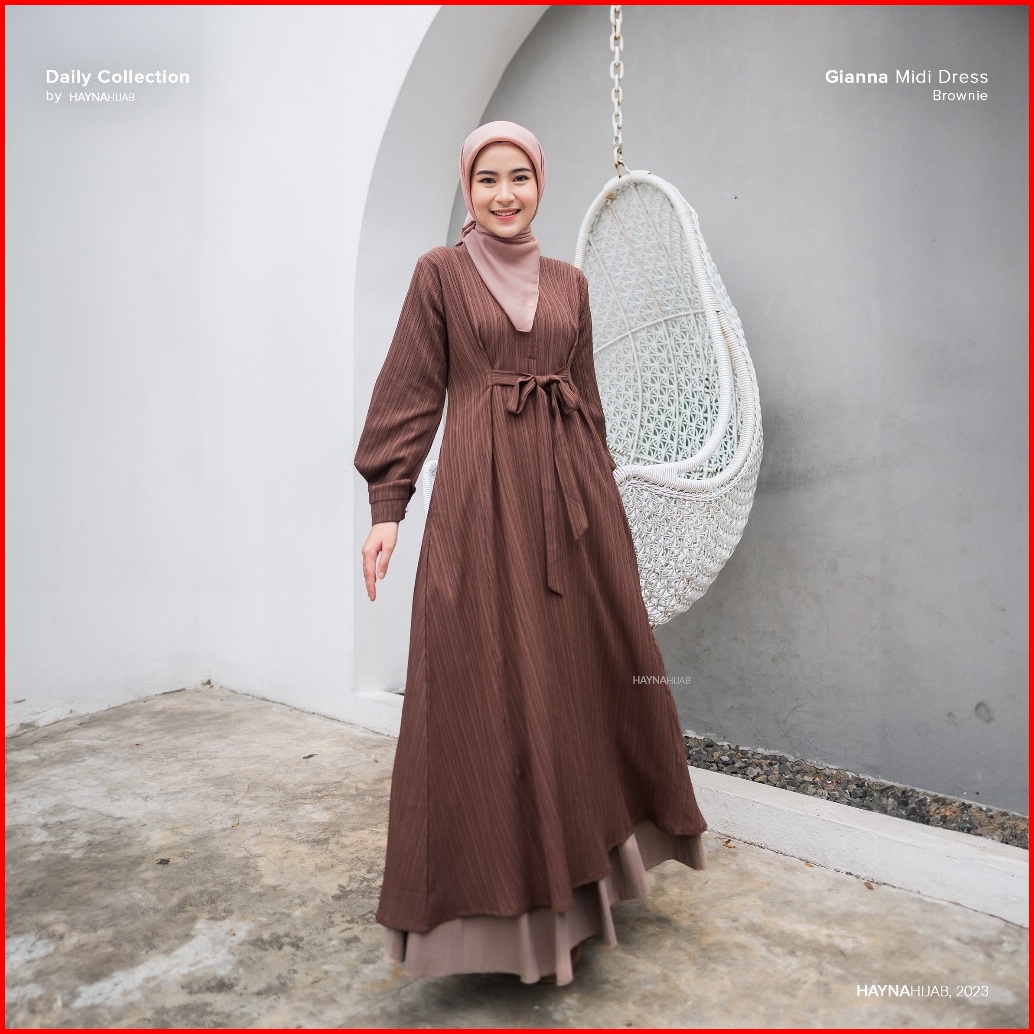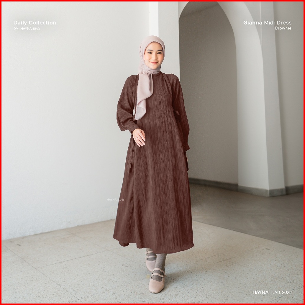 Hayna Gianna Midi Dress All Colors - Daily Dress Busui Friendly Gamis Wanita Muslim