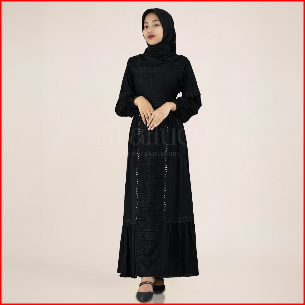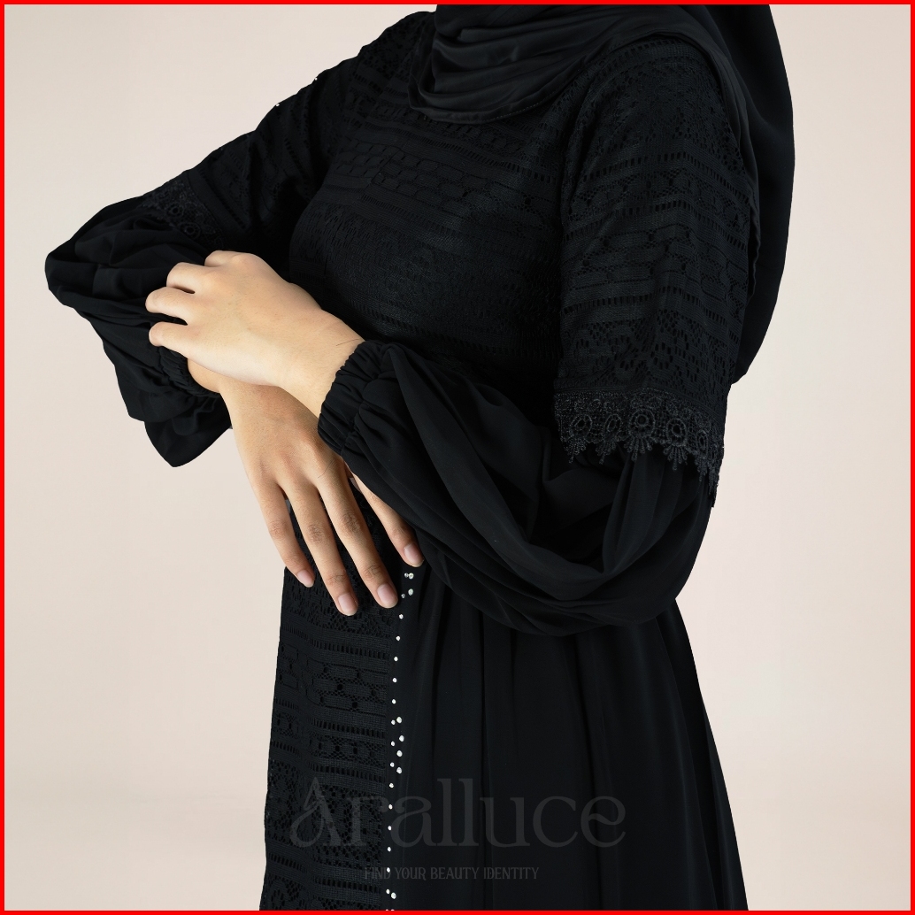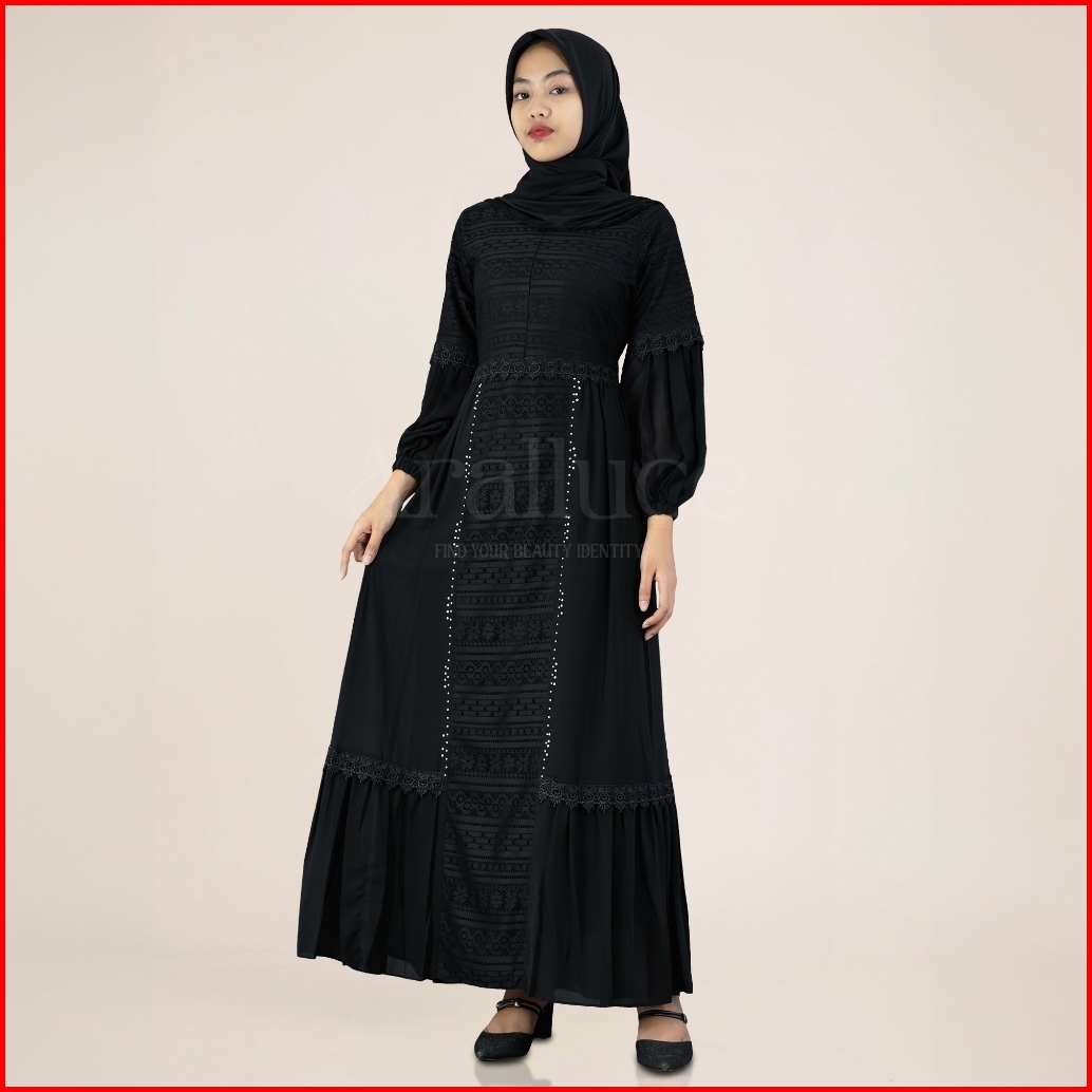 Aralluce Gamis Brukat Hitam Premium Elegan - Baju Gamis Brokat Terbaru Mewah