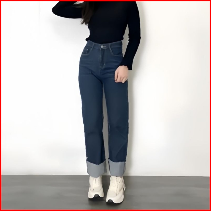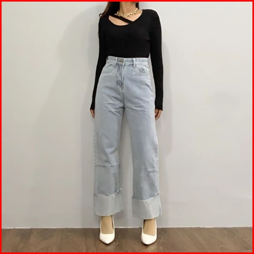 Ege - Celana Kulot Lipat Bawah E21 Celana Jeans Highwaist Loose Terbaru