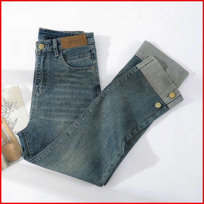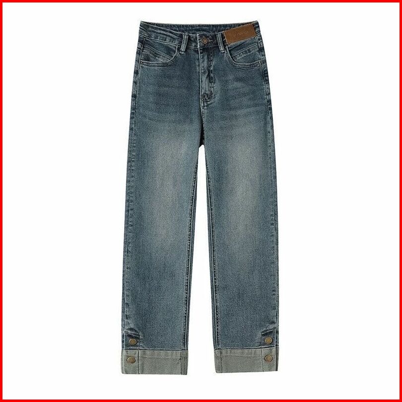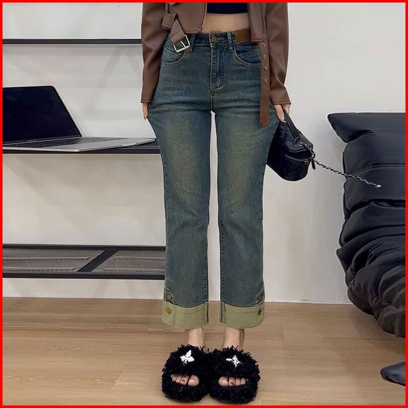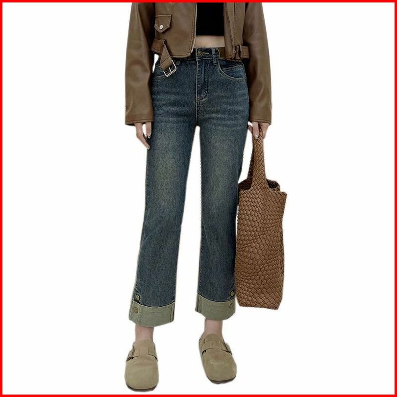 Shenel Celana Jeans High Waist 8034 Jeans Kulot Highwaist Stretch Denim Kaki Lipat Jeans Panjang 7 8 Biru Retro