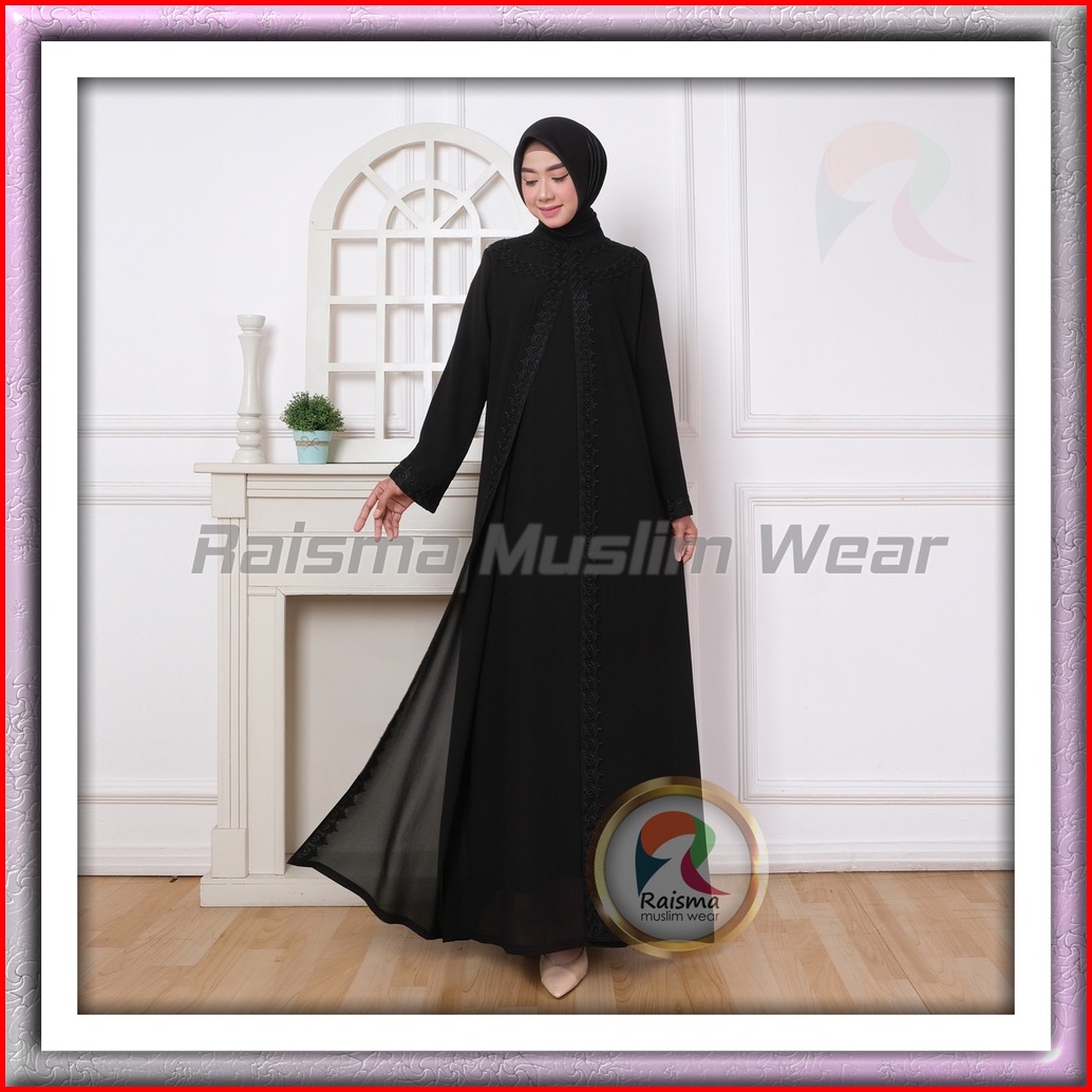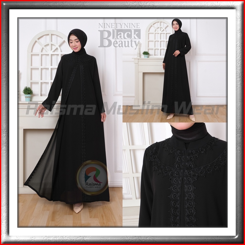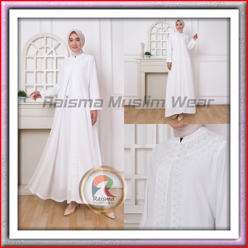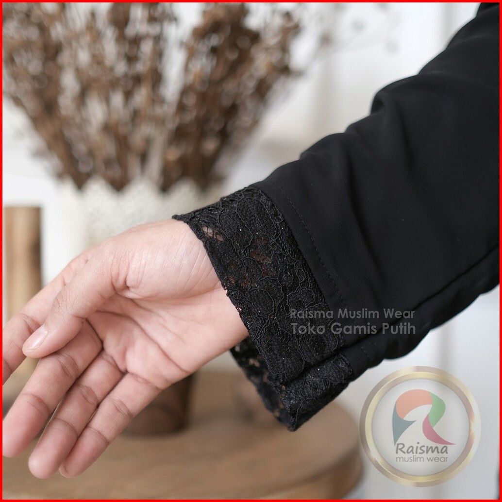 Raisma - Gamis Abaya Hitam Dan Broken White Aplikasi Renda Perlengkapan Umroh Haji Wanita 136