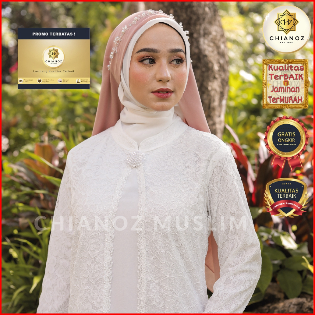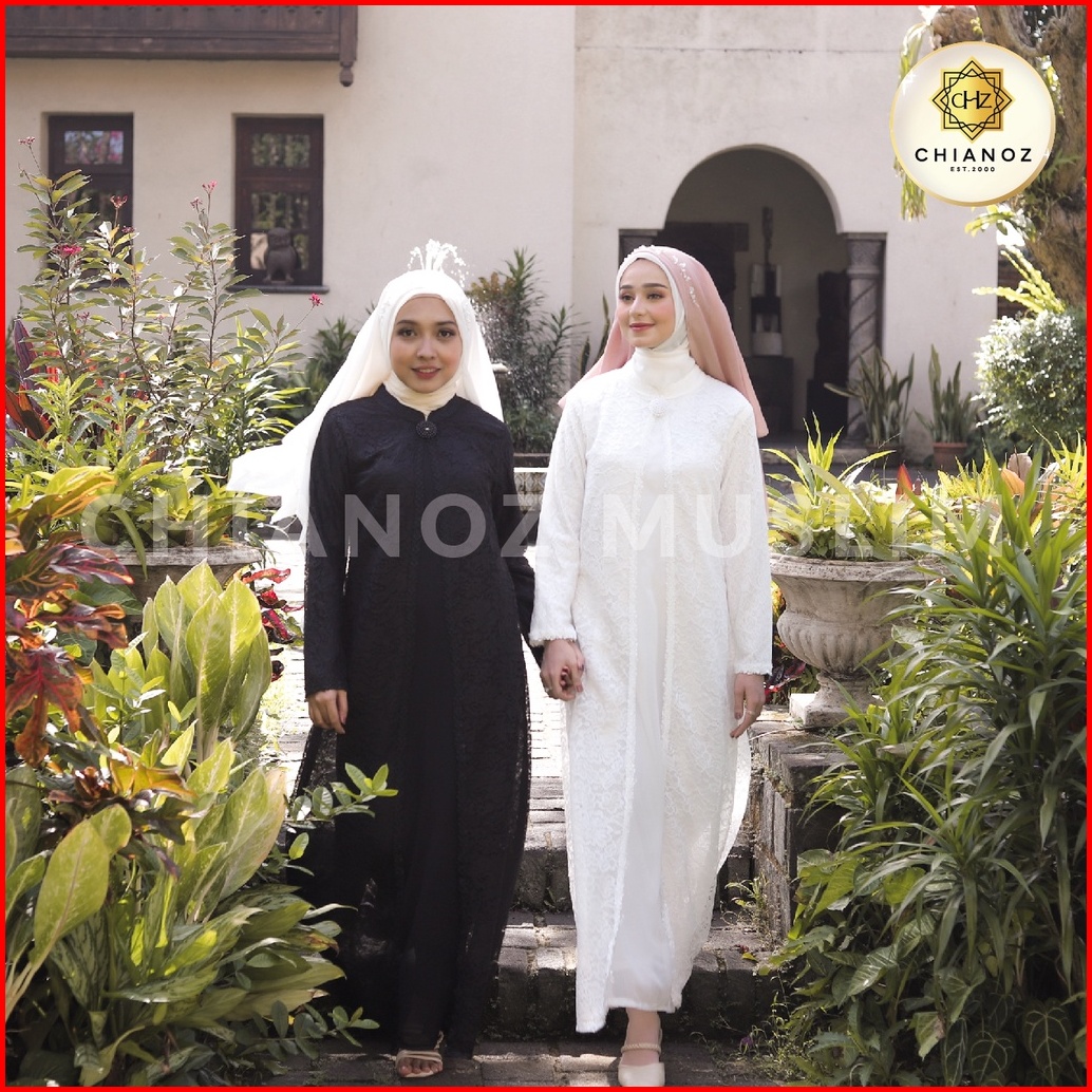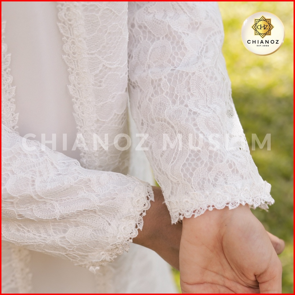 Chianoz Gamis Putih Abaya Mewah Nagita Dress Full Brukat Renda Baju Lebaran Umroh Haji Manasik Pesta Akad 126 192