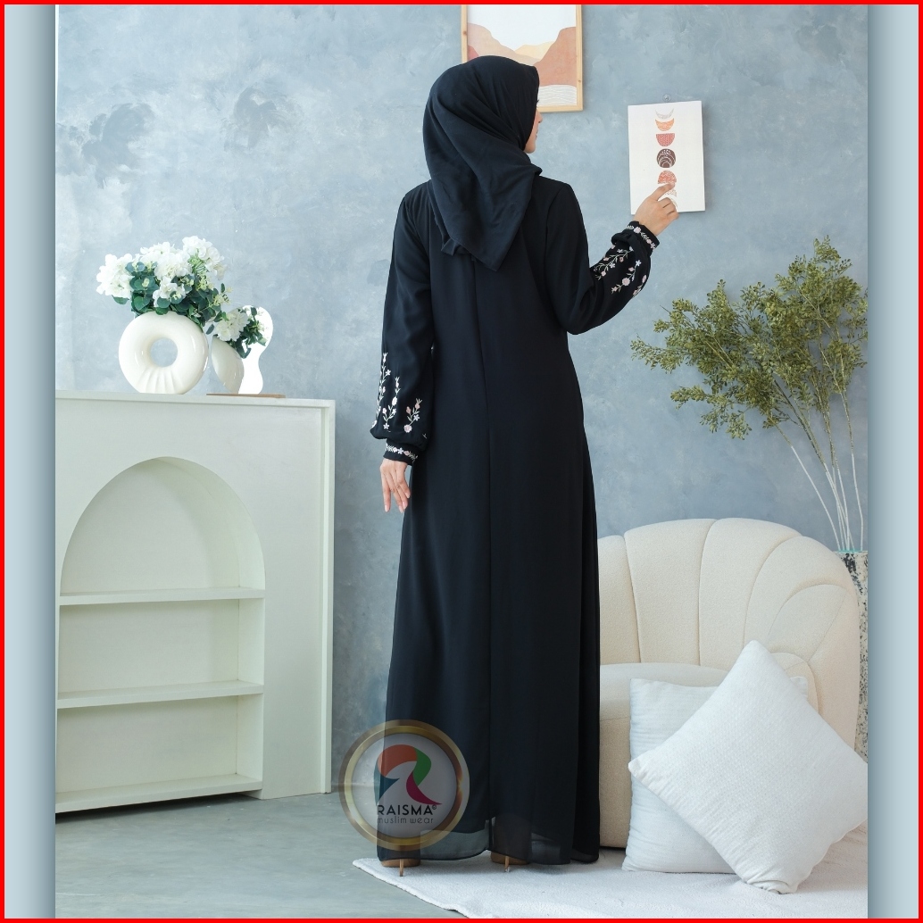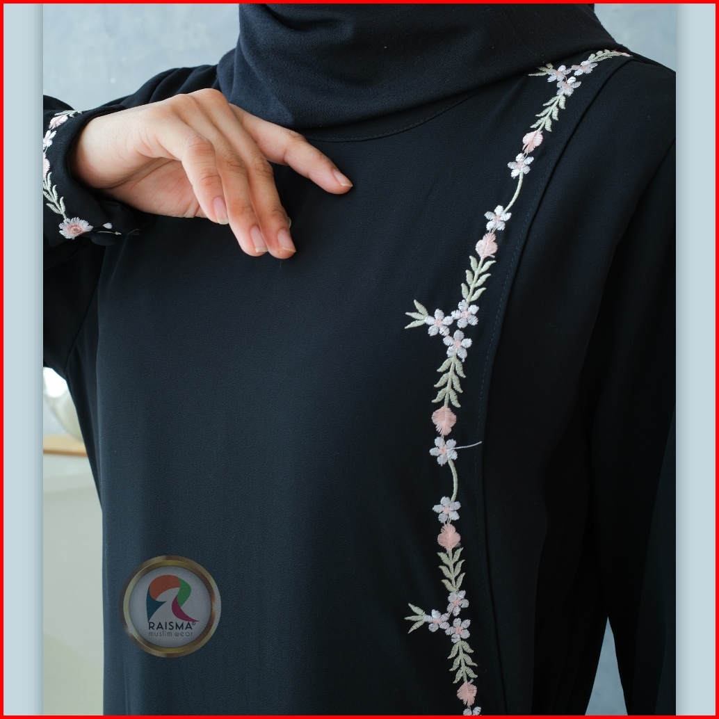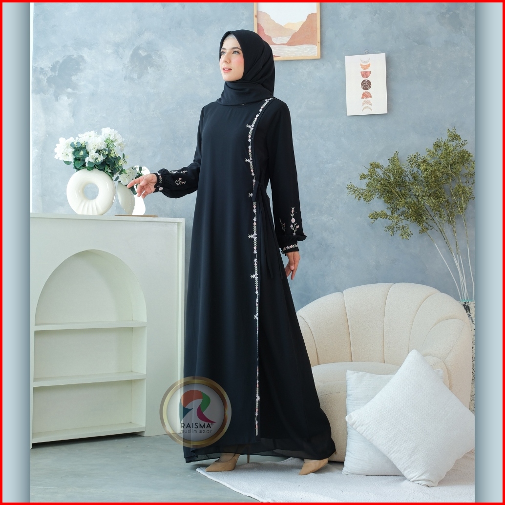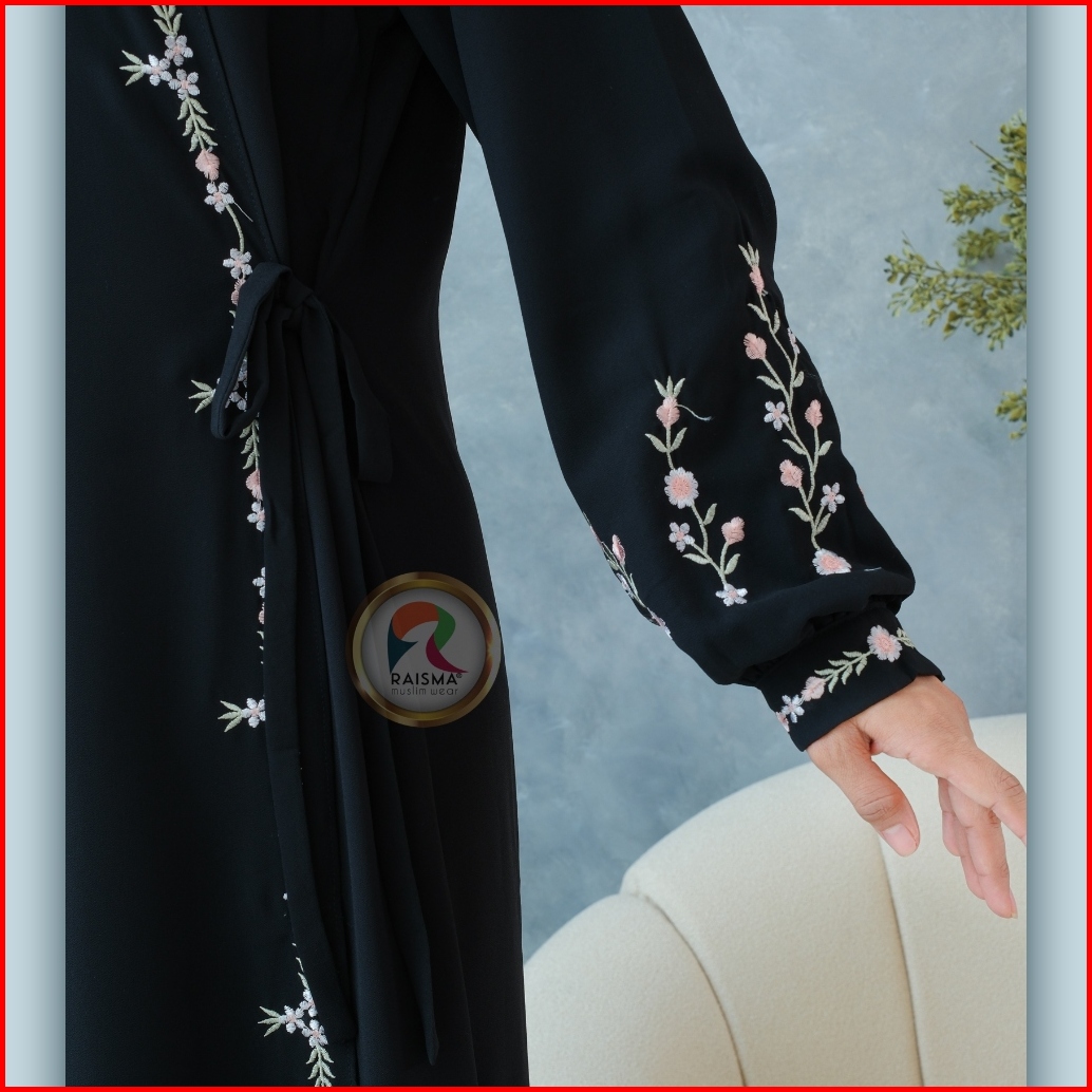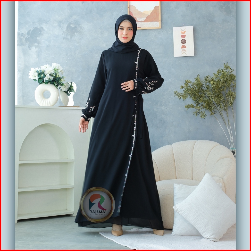 Raisma - Ivanna Gamis Hitam Ceruti Babydoll Overslah Kait Samping Aplikasi Bordir