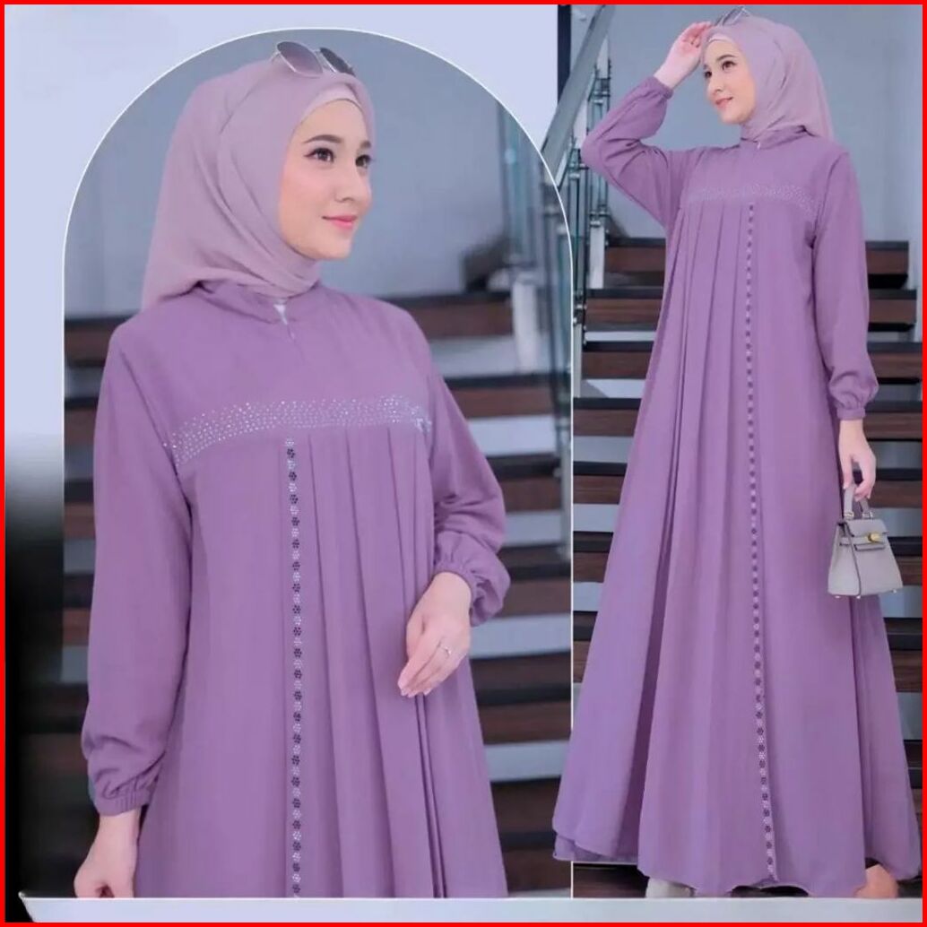 Azzahra Dress Fashion Muslim Wanita Lebaran 2025 Ootd Kondagan Bahan Ceruty Babydoll Mix Swarovzki