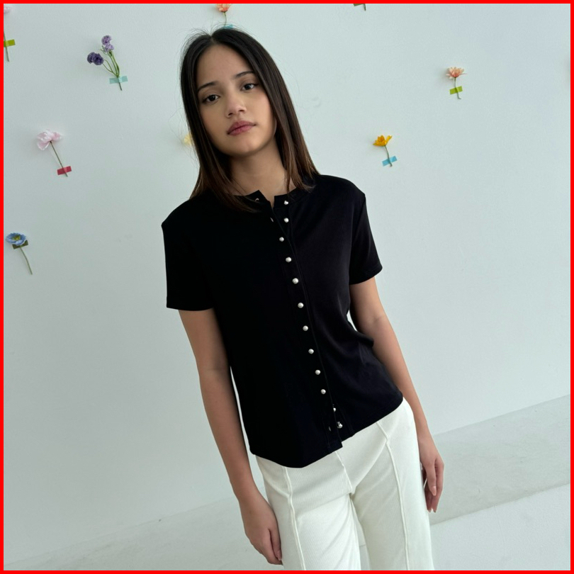 Iona Top Atasan Knit Wanita Lengan Pendek Kancing Basic Korean Button Top Summer Baju Knit Kancing Rib Wanita Long Sleev