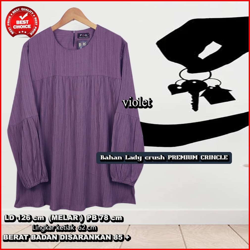 New.atasan Jumbo Wanita Blouse Jumbo Tangan Balon - Lady Crush Premium - Melar