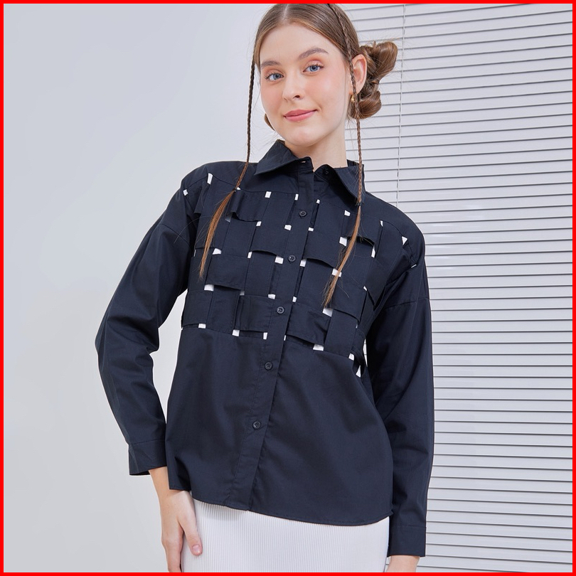 Senchi - Fuwa Weave Shirt Kemeja Wanita Model Anyaman Kemeja Wanita Style Jepang Korea Kemeja Wanita Kekinian