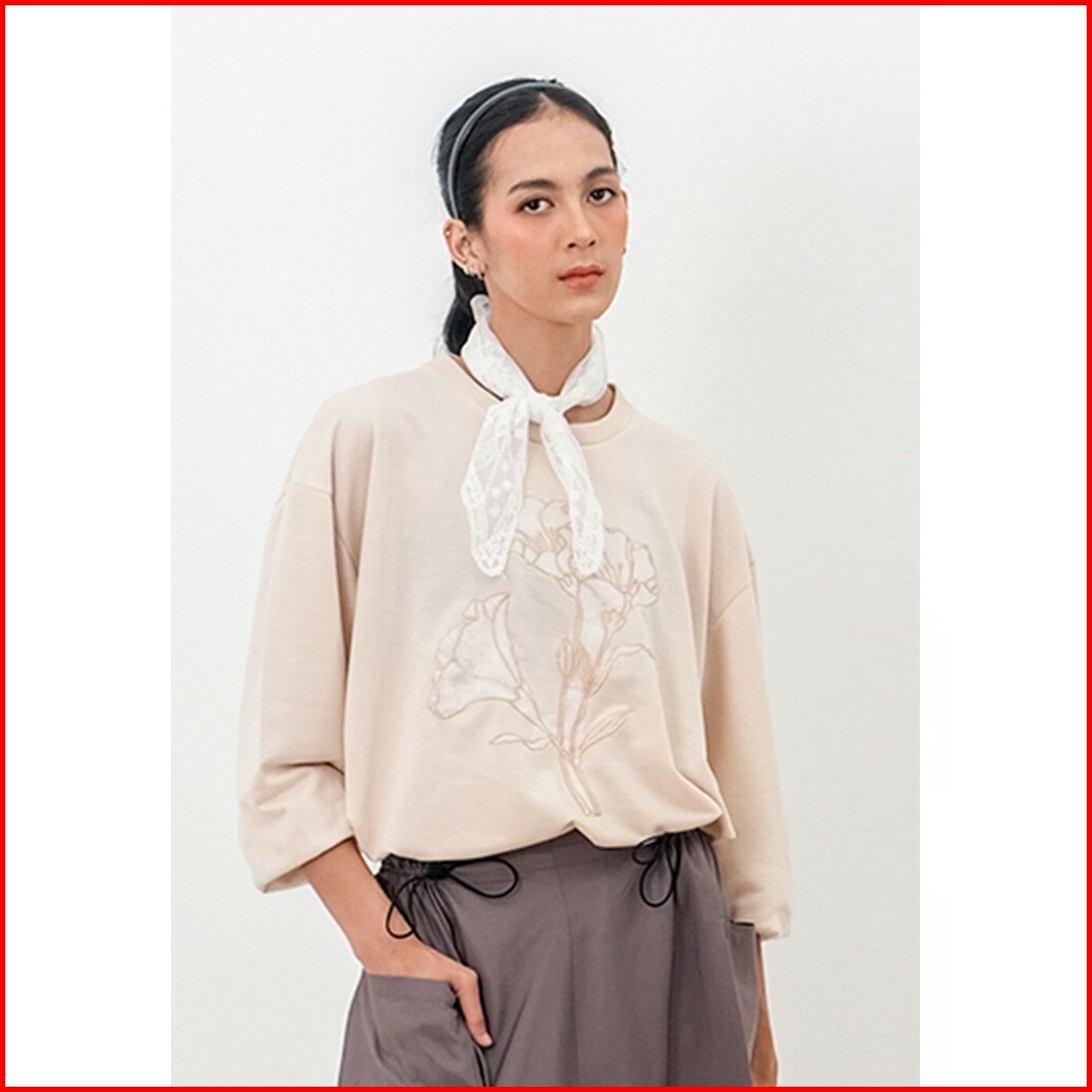 Hanna Kaos Lengan Panjang Oversized Fit Patch Embroidery Sweatshirt Xavia Ch141024