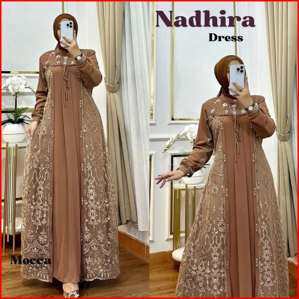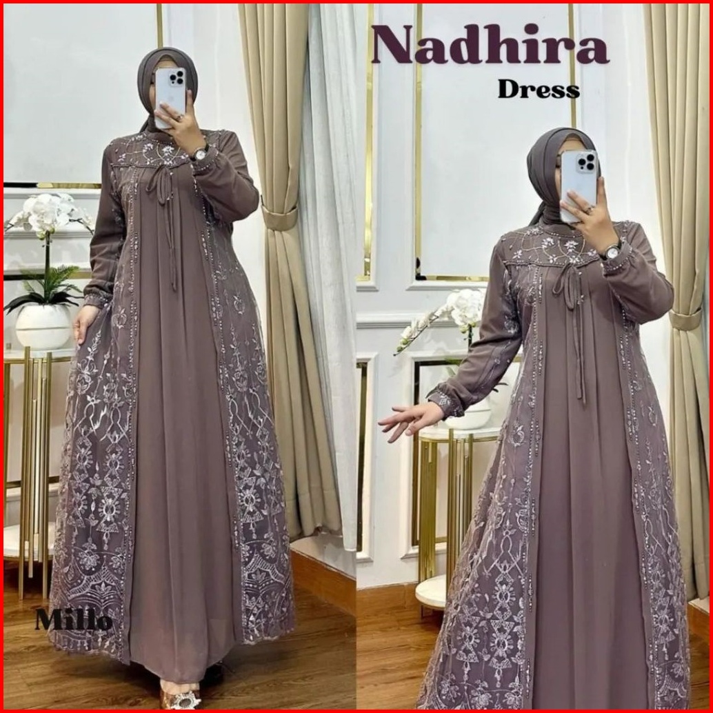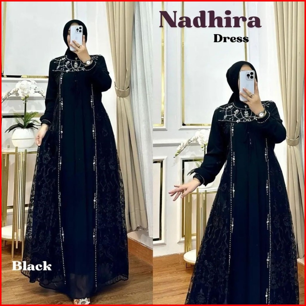Gamis Pesta Mewah Elegant Nadhira Maxy Bl Bahan Kain Ceruty Babydoll Full Puring Mix Brukat Aplikasi Swarovski Size M L